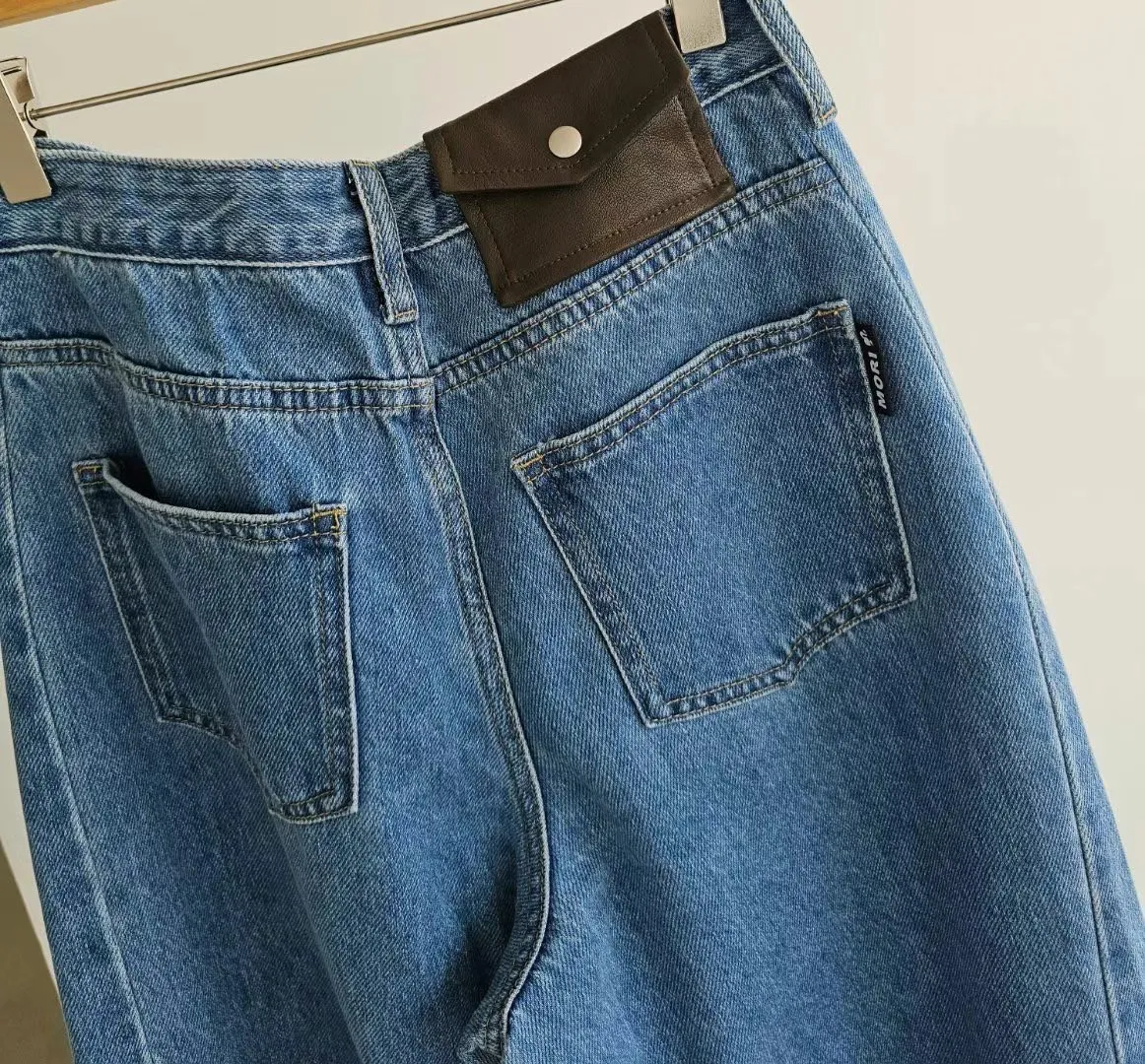 棉 後腰咖色皮革造型口袋標 釦鍊穿脫 有口袋