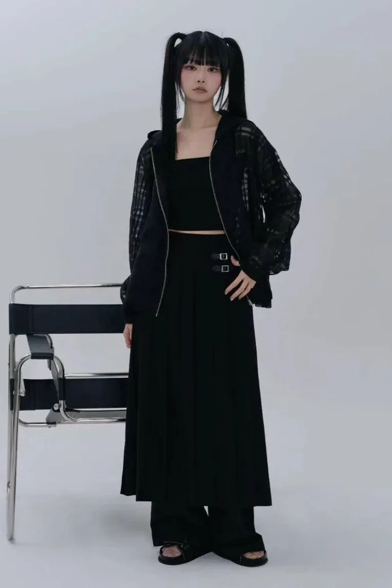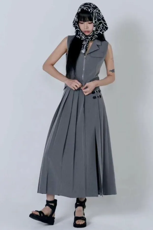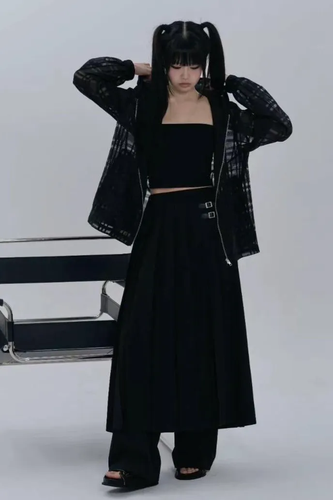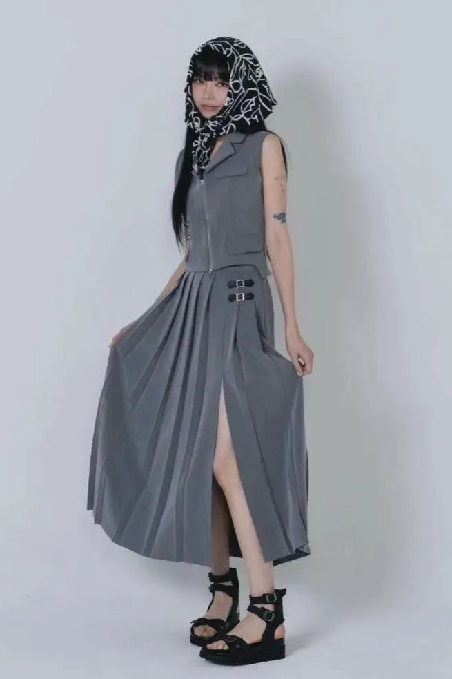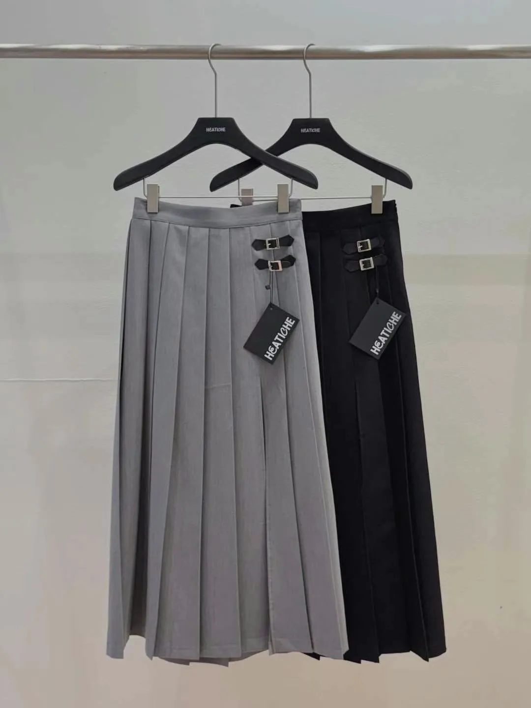 西裝面料 腰間雙釦 高開叉 細緻車工 有內裡 側拉鍊 後鬆緊