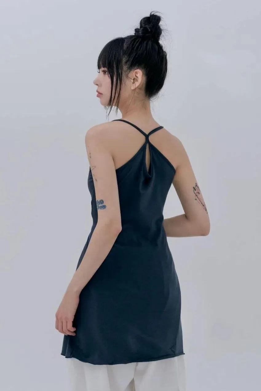 棉 斜側拉鍊開叉 背後交叉簍空設計 拉鍊穿脫 微彈性