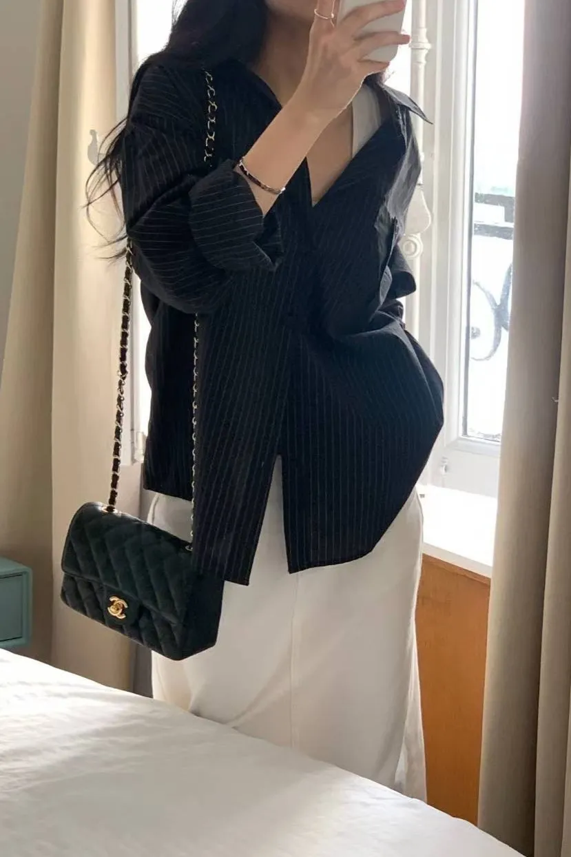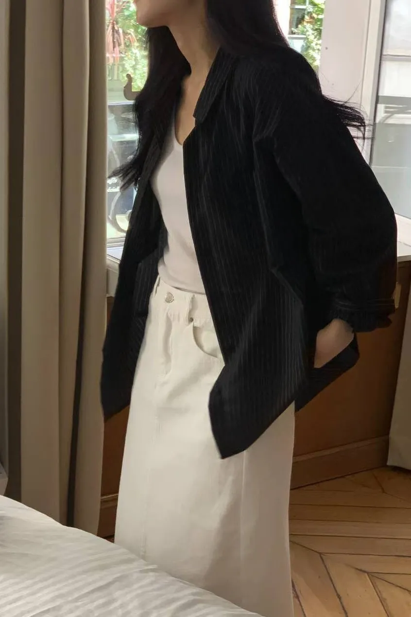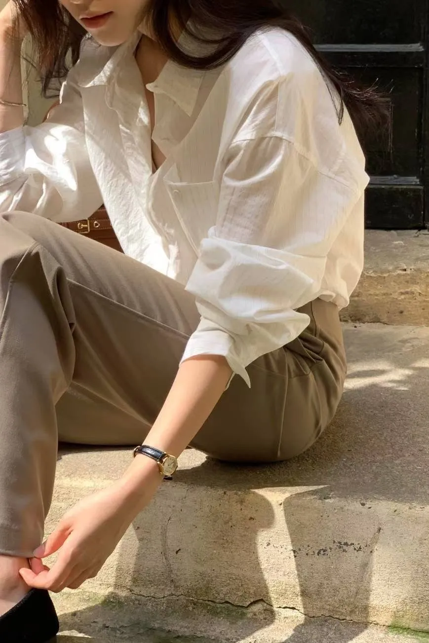 棉 輕薄透氣 設計層次單口袋 細緻直條紋 背後立體壓褶車線 夏日清爽