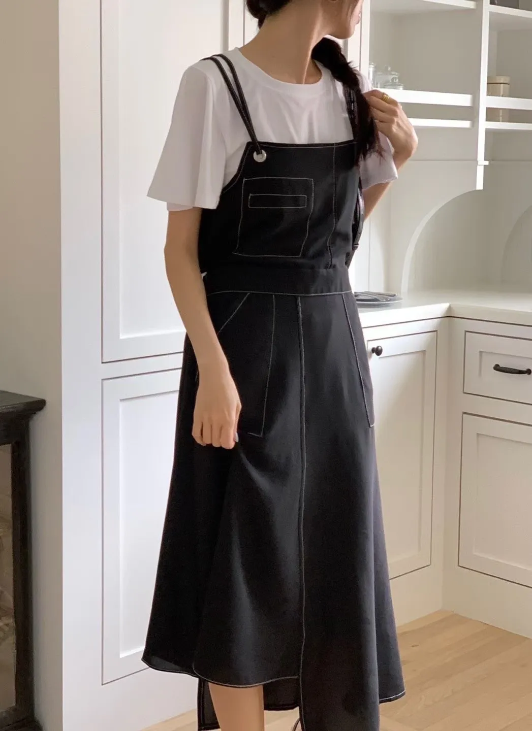 聚酯 輕薄透氣 好看不對稱下擺 有口袋 炎夏可穿 美腰簍空 後腰鬆緊