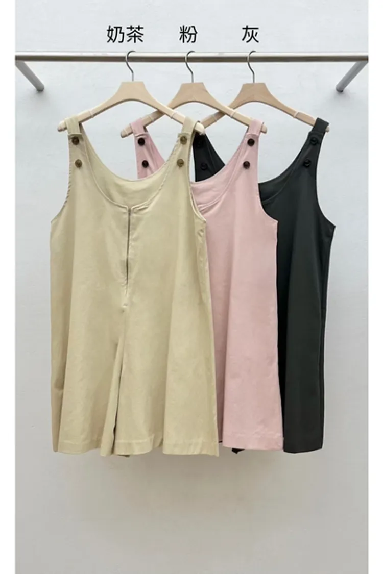 棉,肩帶可調 胸前拉鍊 俏皮五分褲