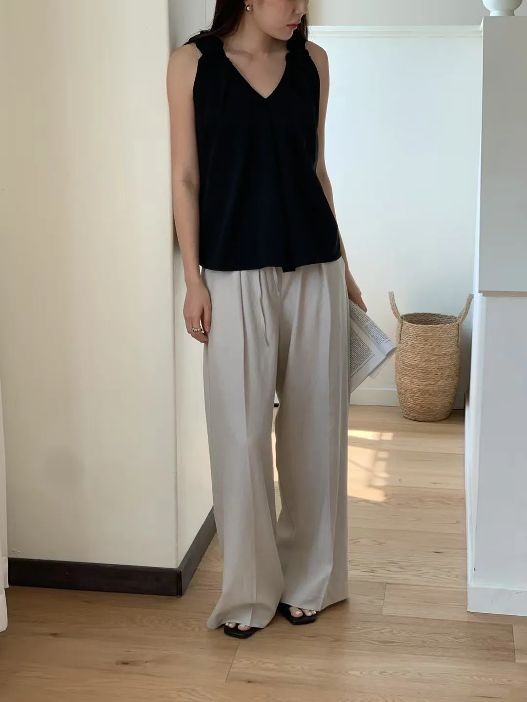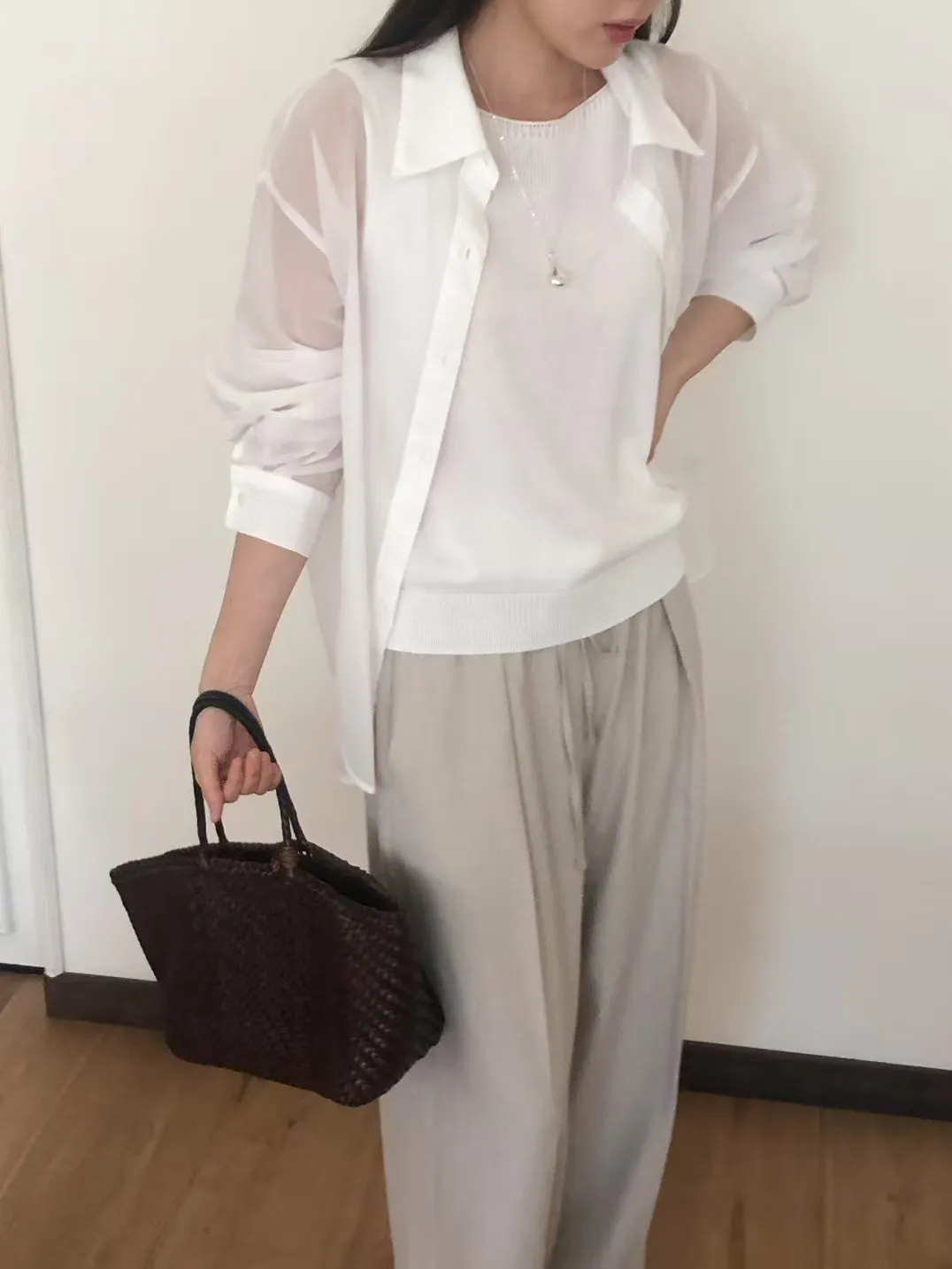 WB237推薦款很舒服光澤垂墜感長褲 白 燕麥 官網價$990 線上價$960