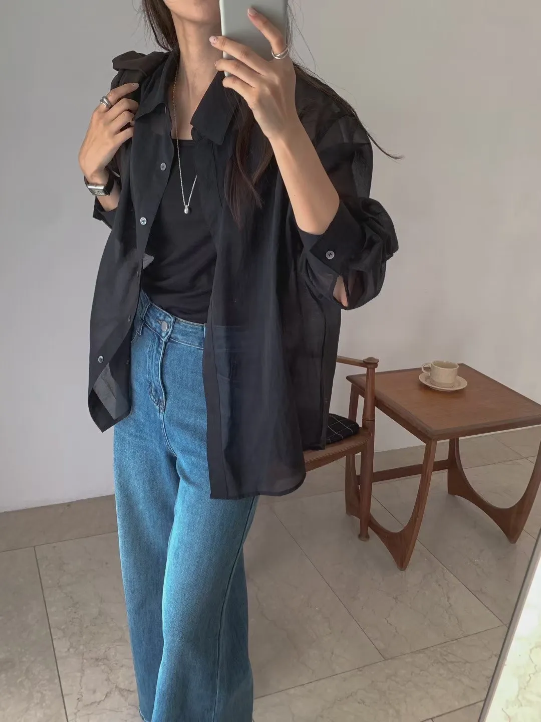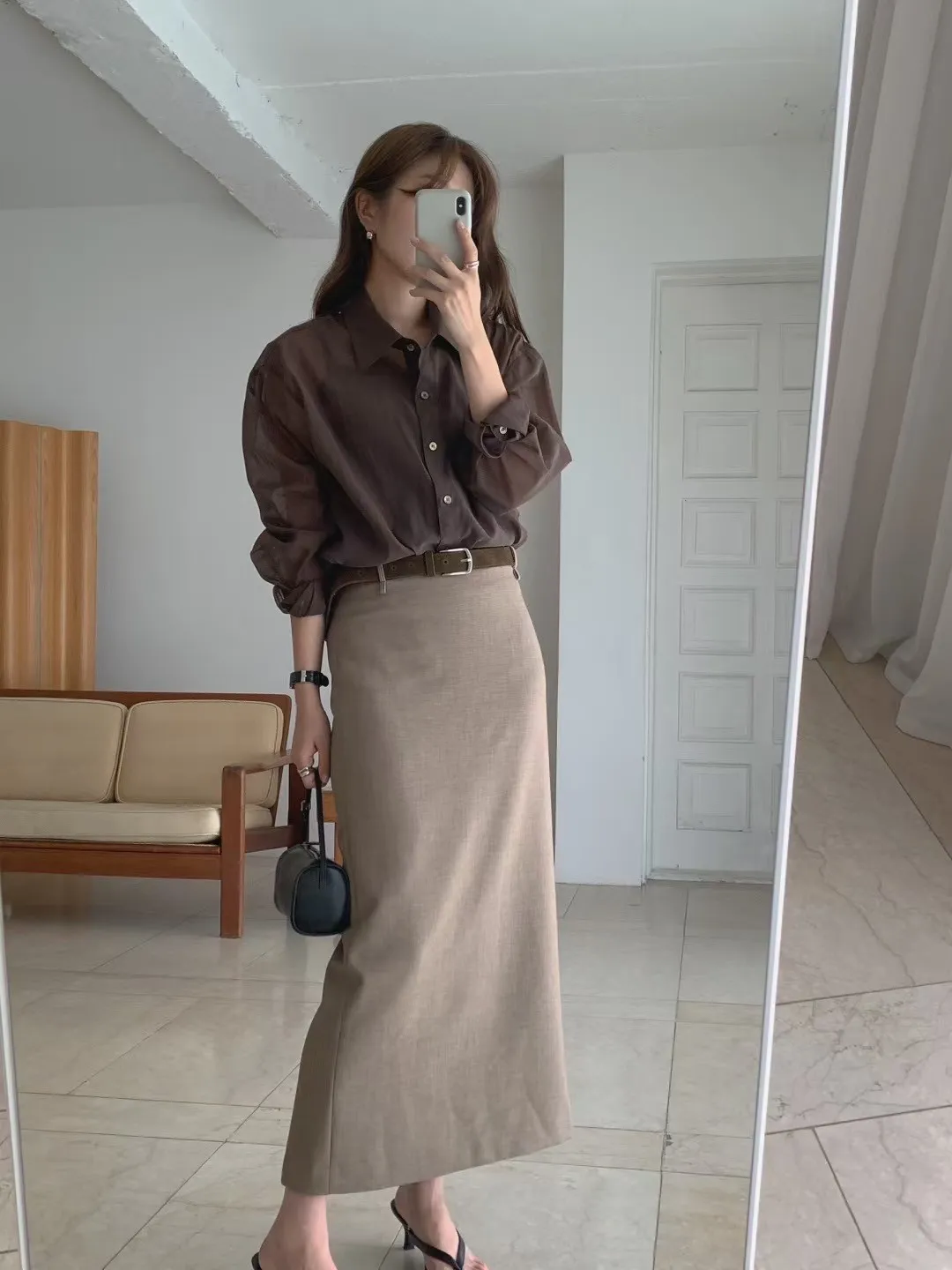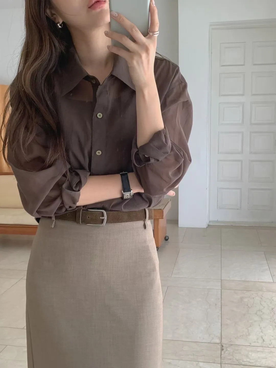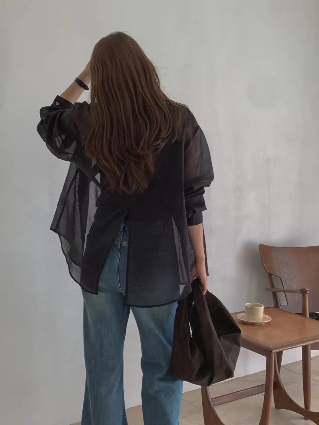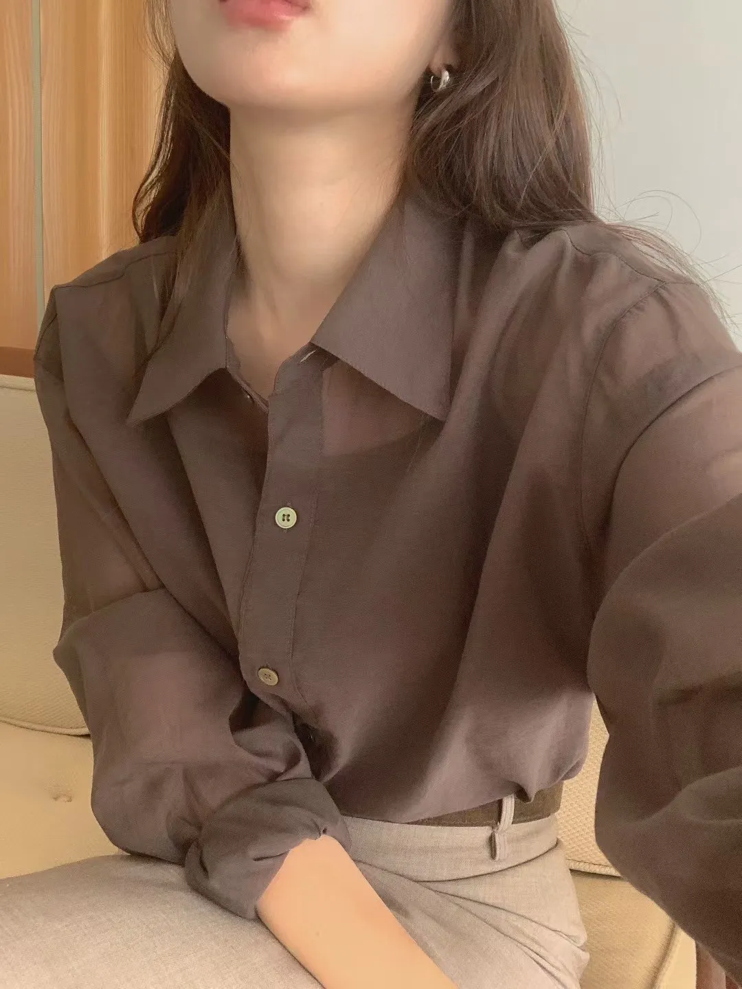WB240輕盈涼爽後開叉透光襯衫 白 咖 黑 奶茶 官網價$880 線上價$850