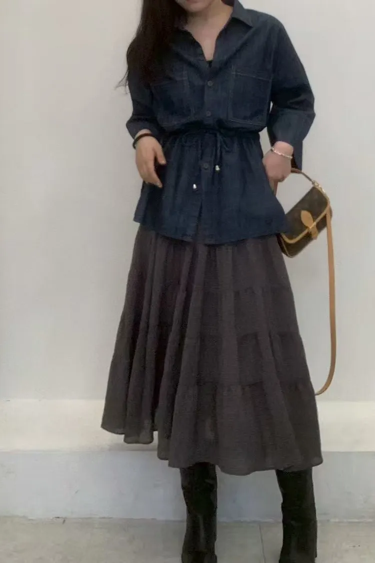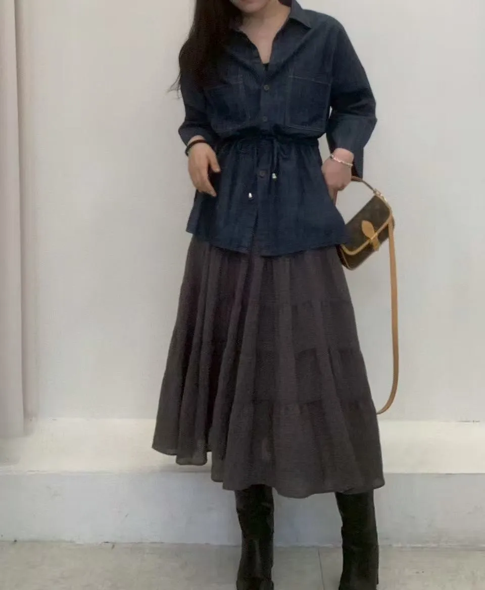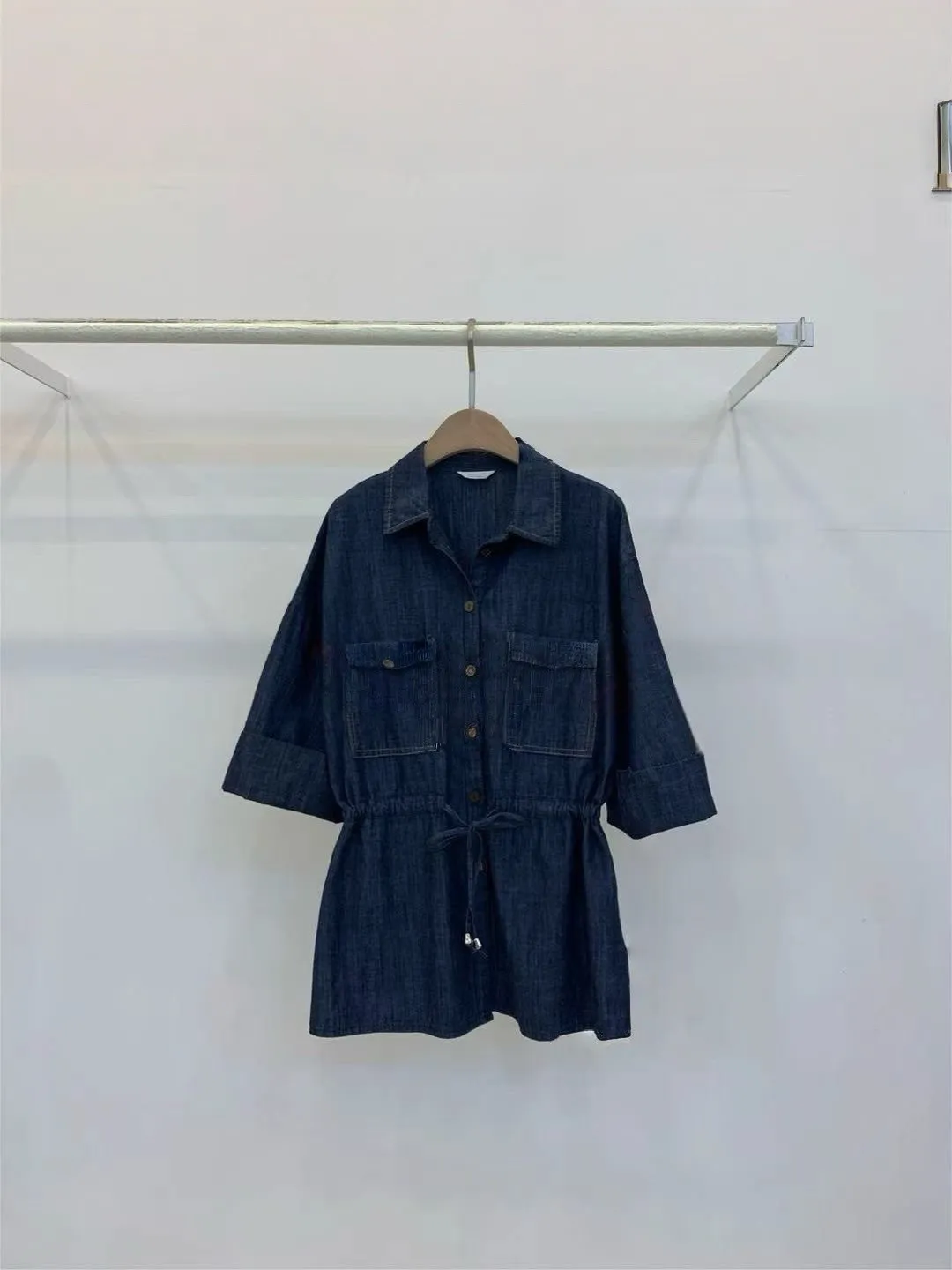 棉 柔軟面料 七分袖 系腰抽繩 雙口袋 排釦穿脫