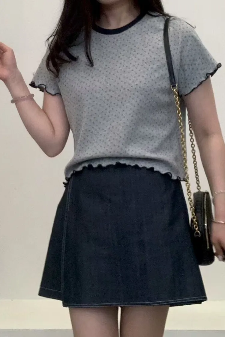 棉 透氣舒適 薄款大彈性 手袖下擺木耳滾邊 細坑條面料 適合夏天