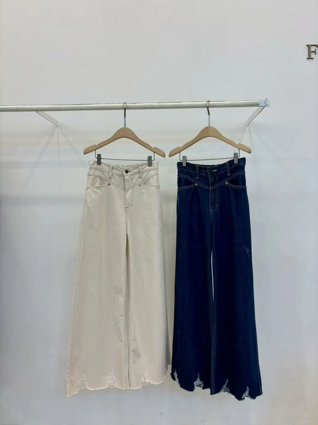 WB284設計感車線不收邊牛仔長褲 白 藍 S M L 官網價$1220 線上價$1190