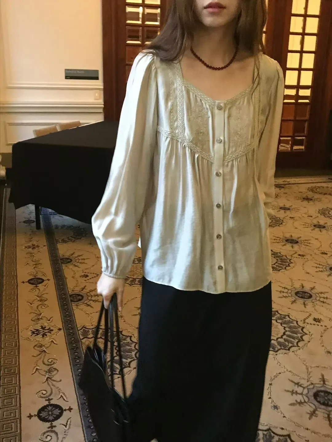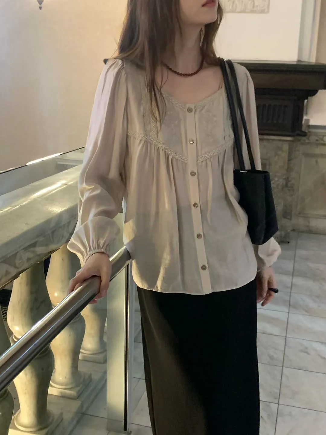 人造絲+縲縈 薄款透氣 細緻光澤感 釦子質感配色 L號友善 適合夏天