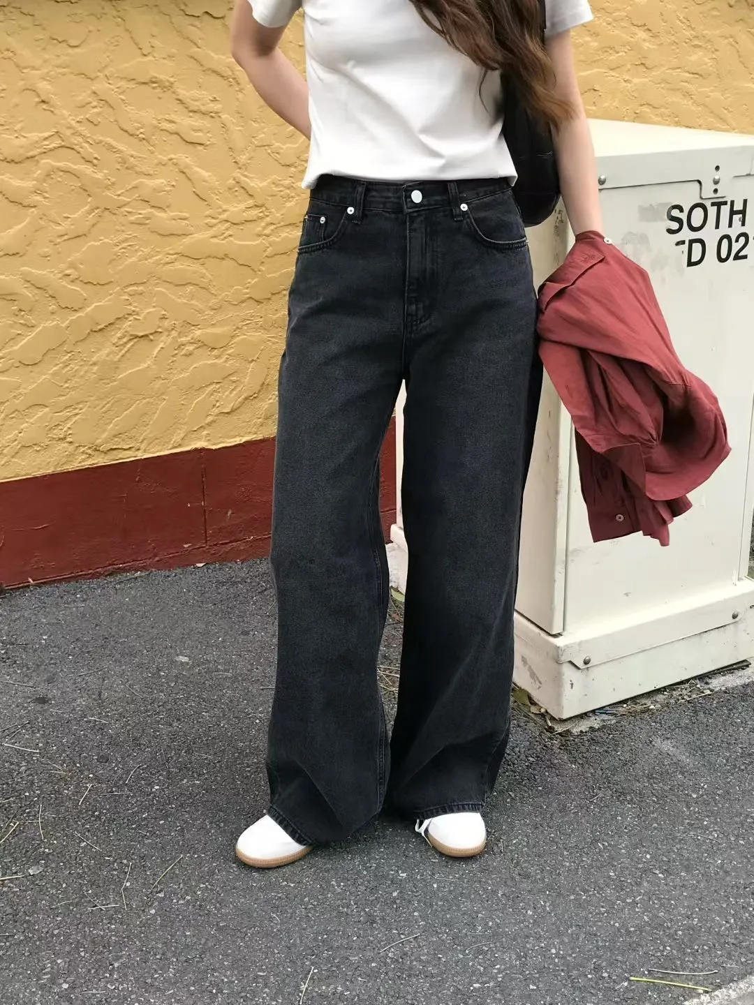 棉,直筒且微喇叭 水洗刷色 釦鍊穿脫 有口袋