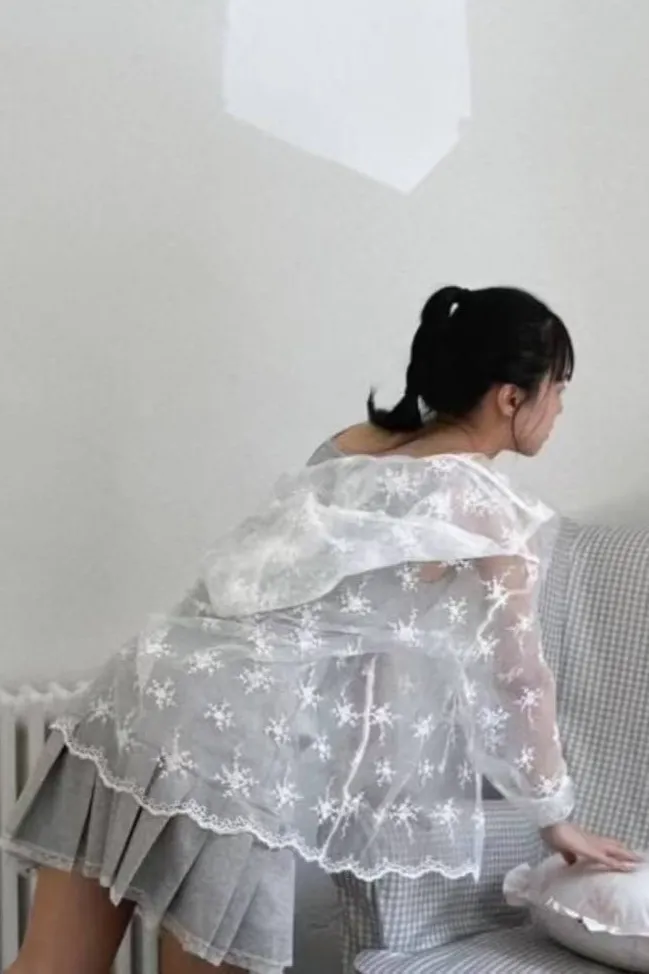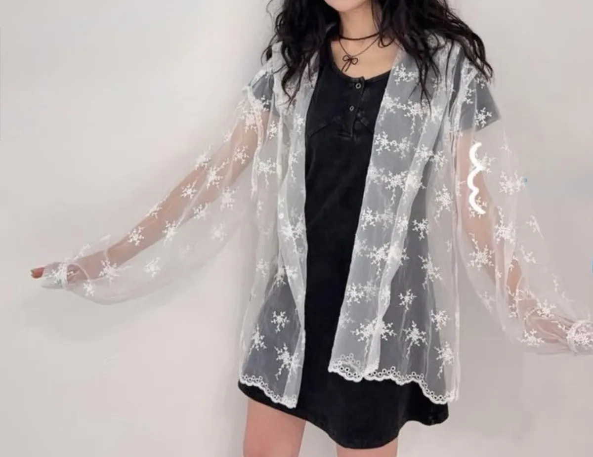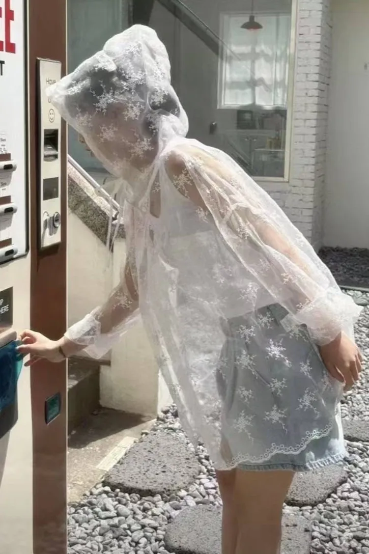 歐根紗+刺繡 整件透光 排釦穿脫 連帽設計 不刺癢 XL友善