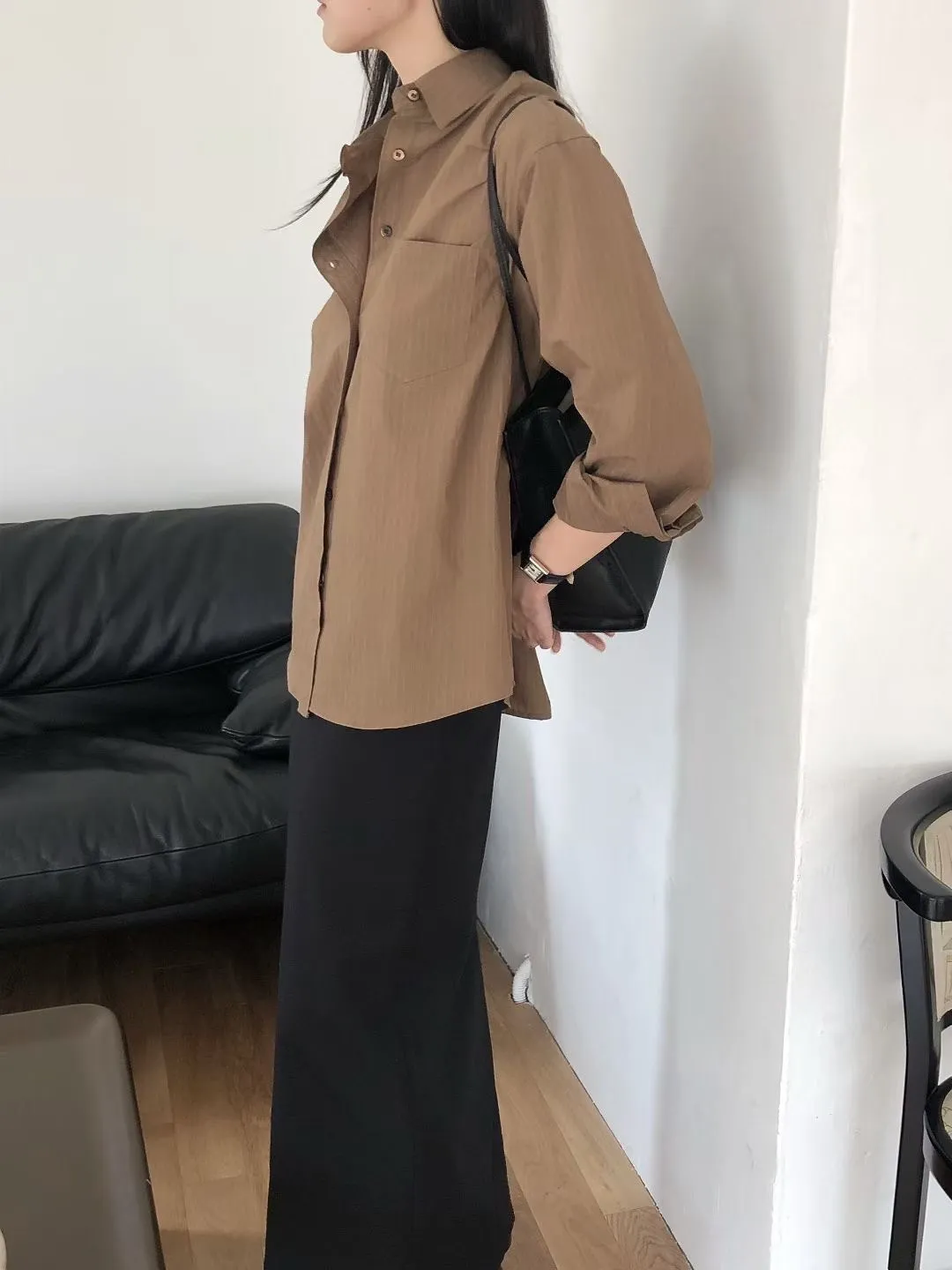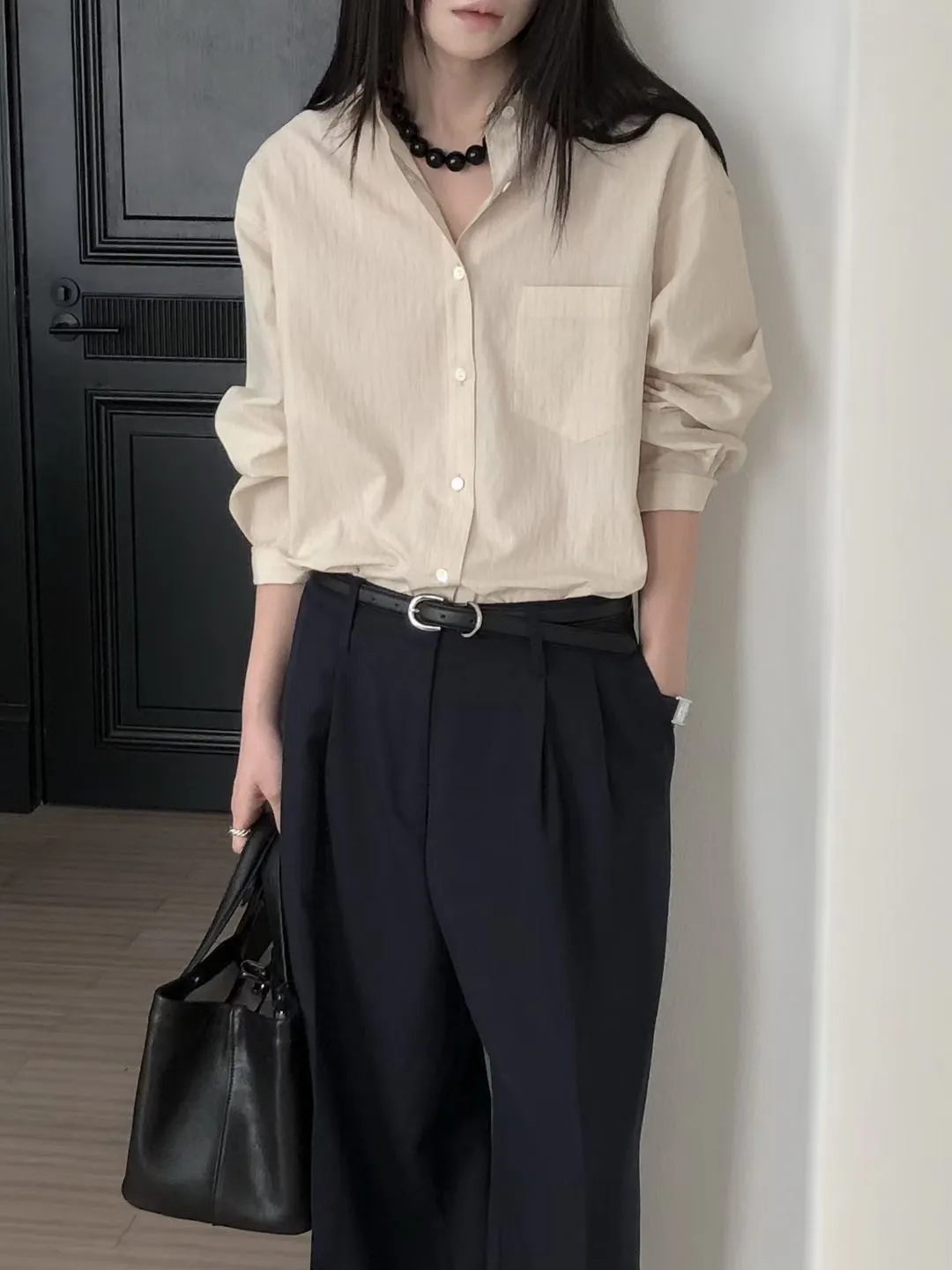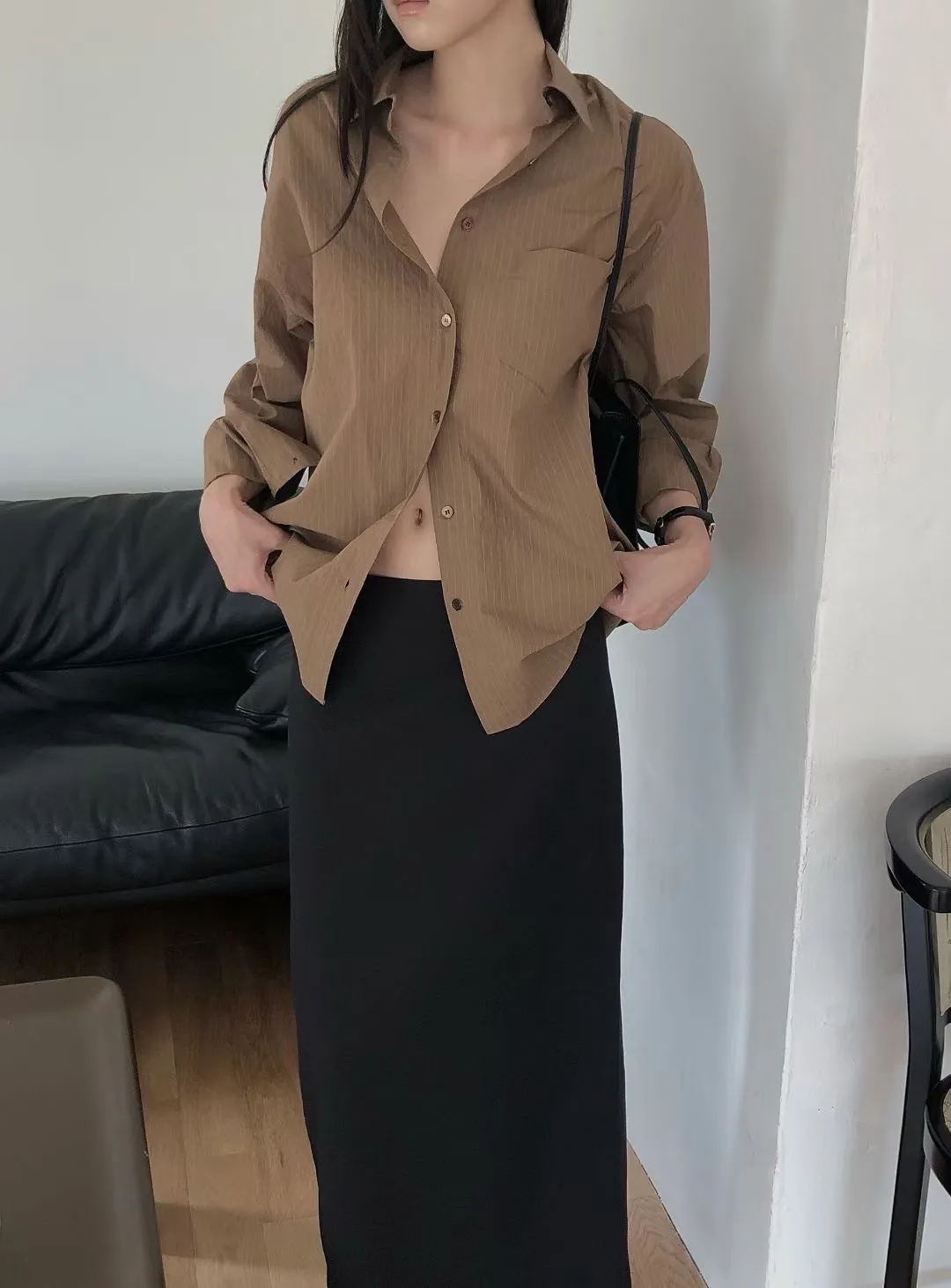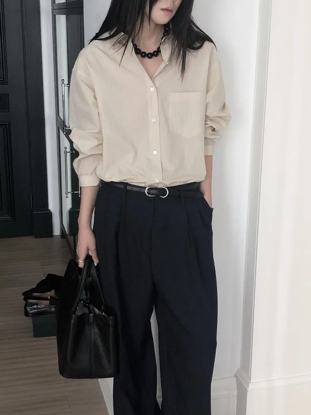 棉 薄款輕盈 舒適透氣 胸前單口袋 隱約直條紋
