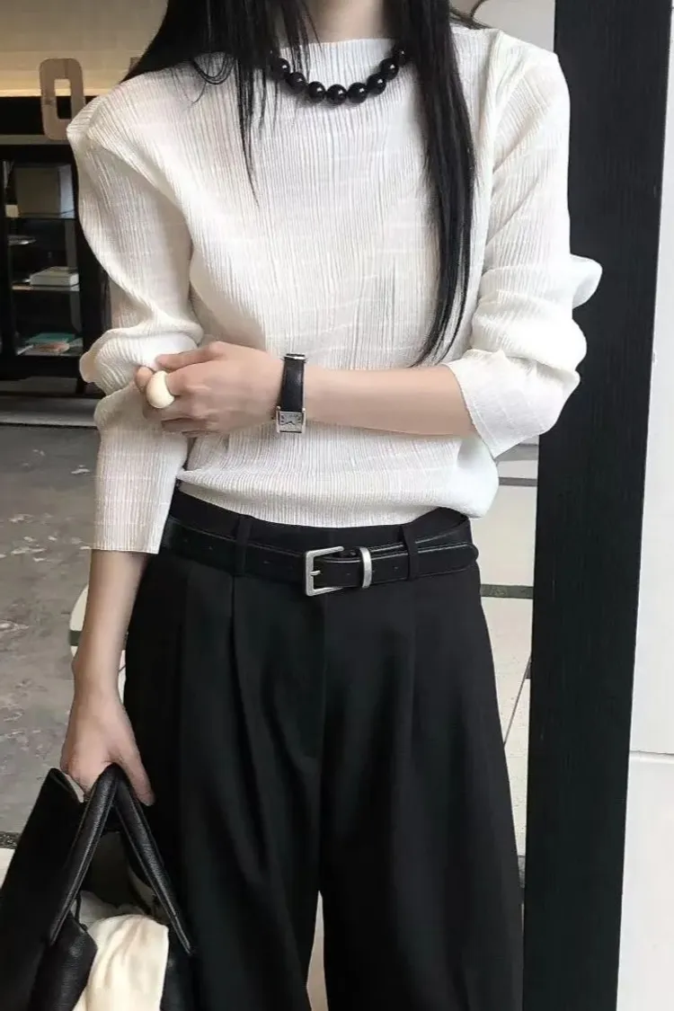 棉+聚酯+彈力 有彈性 寬肩版型 不易皺 不收邊船型領