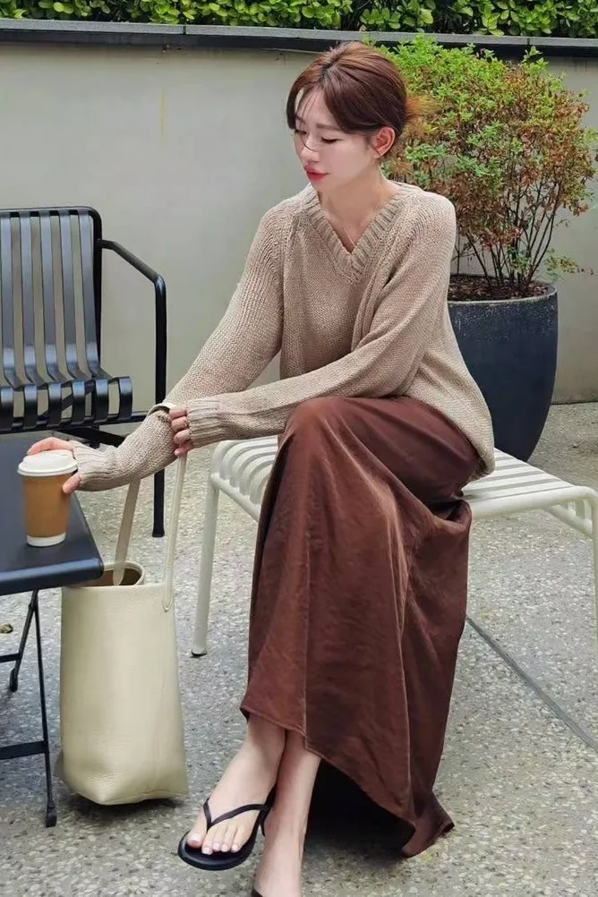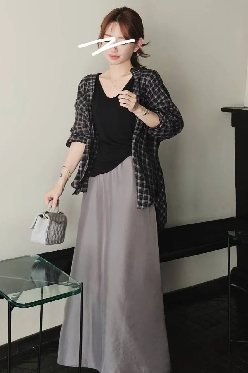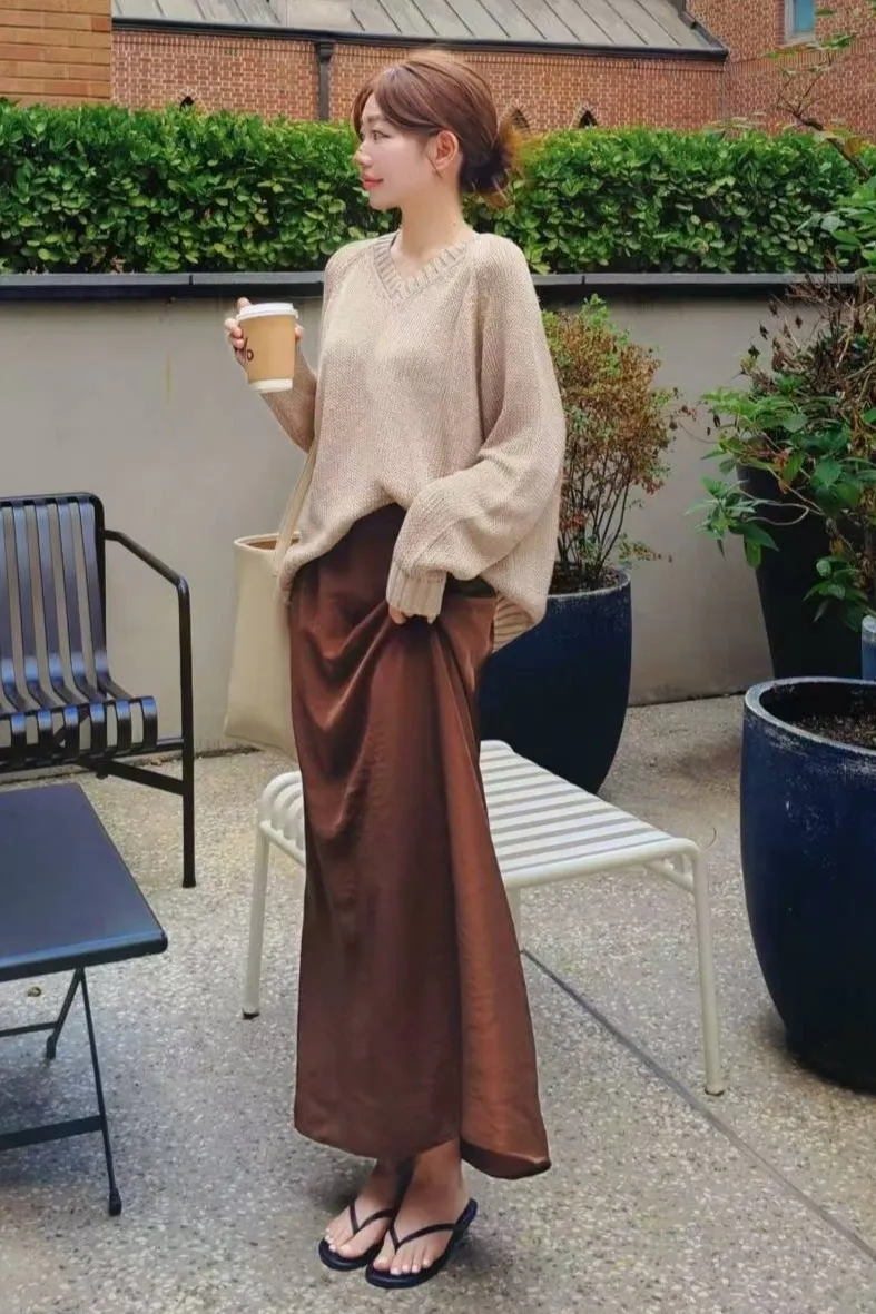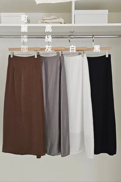 人造絲+聚酯 後腰鬆緊 拉鍊穿脫 慵懶颯美 柔軟緞面微光澤 無口袋 細緻紋路