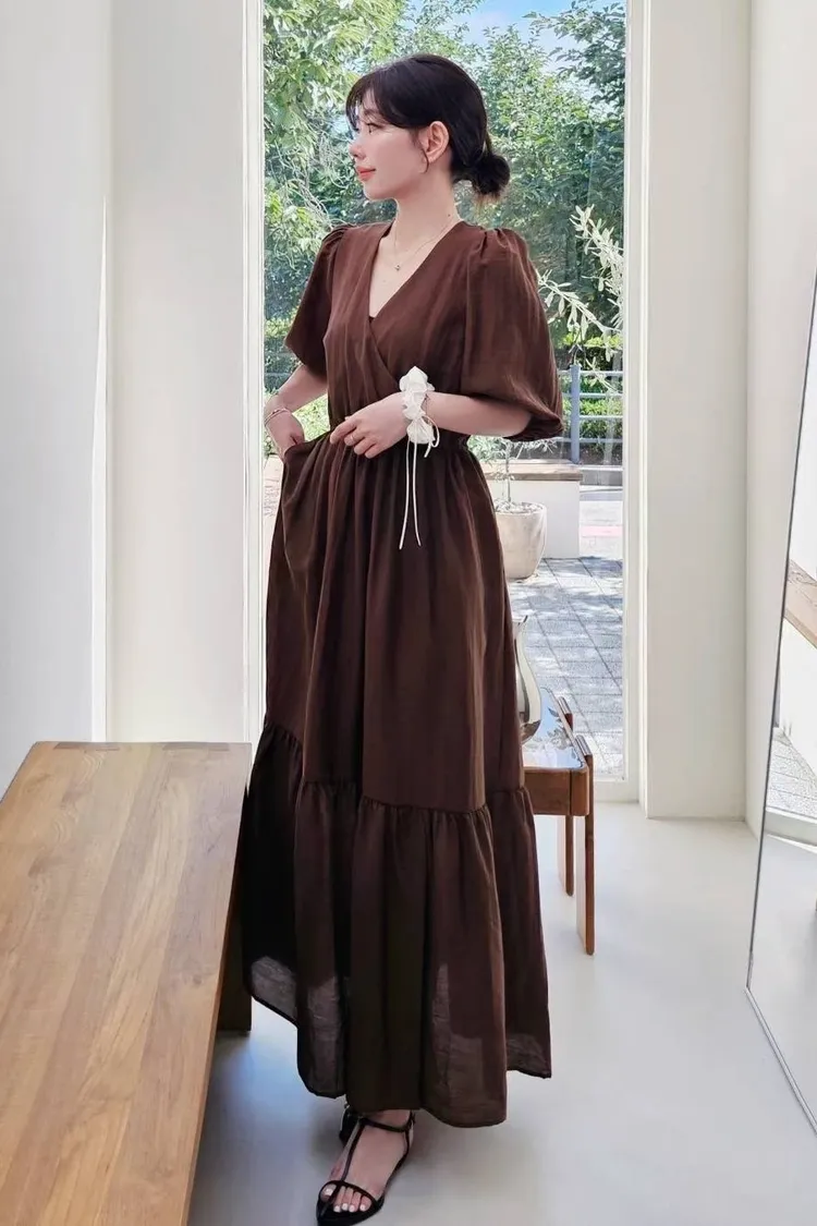 縲縈+亞麻+尼龍 親膚透氣 不刺癢 抓皺窄肩 袖口鬆緊 有口袋