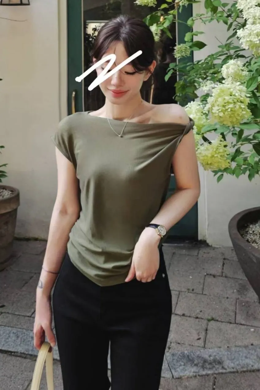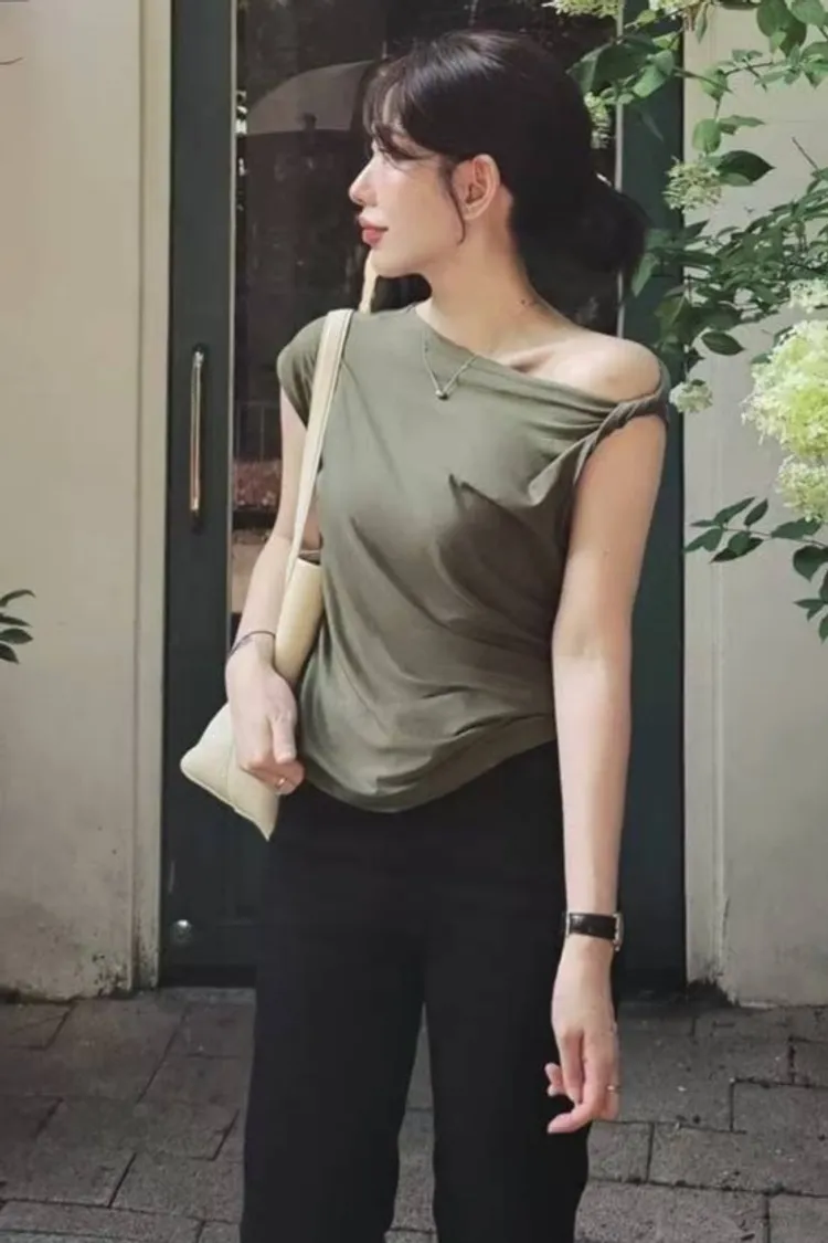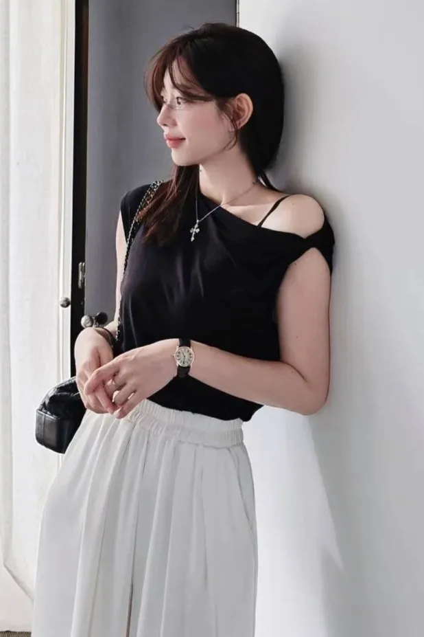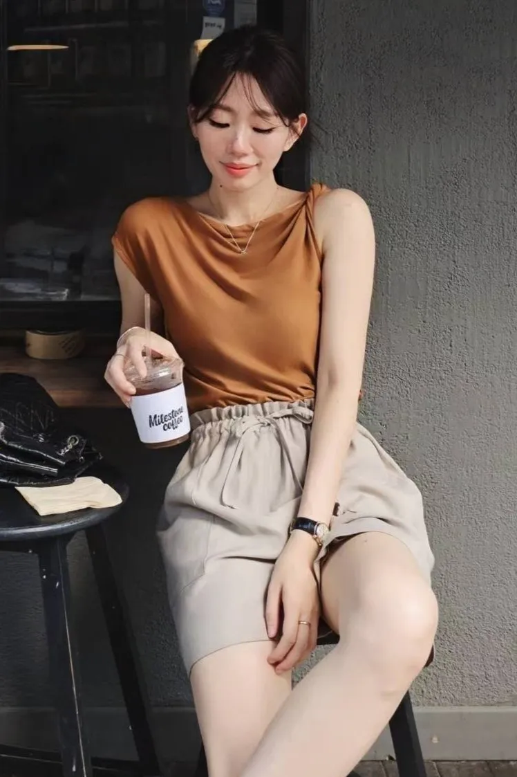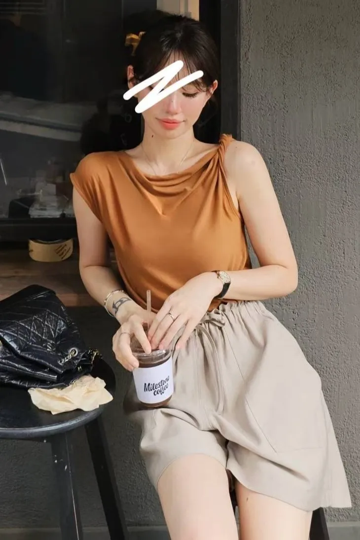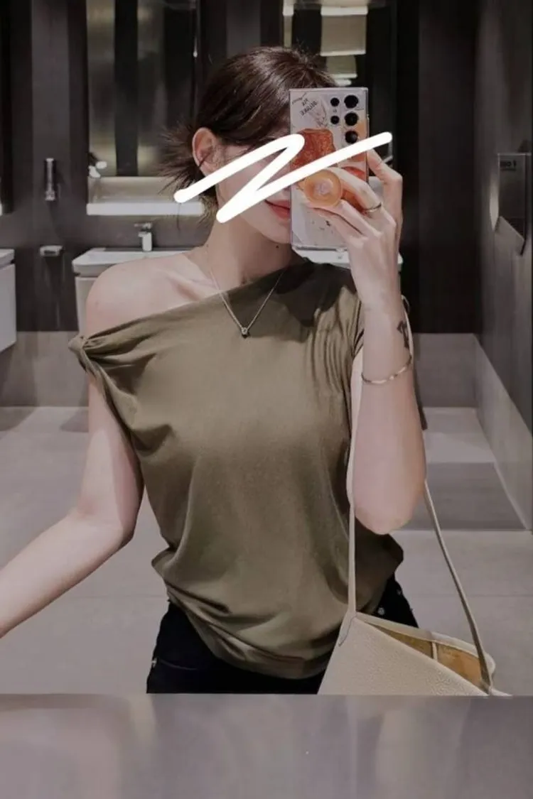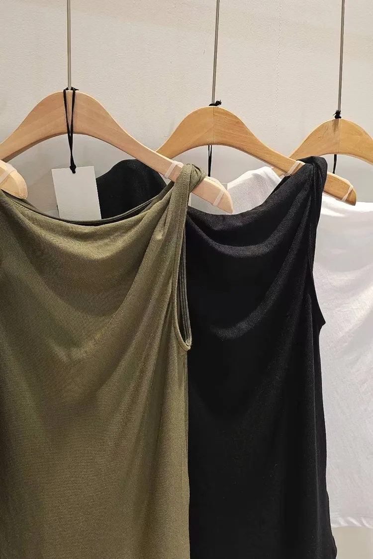 天絲+棉 柔軟親膚 透氣舒適 微光澤 設計感單邊扭結肩帶 適合夏天