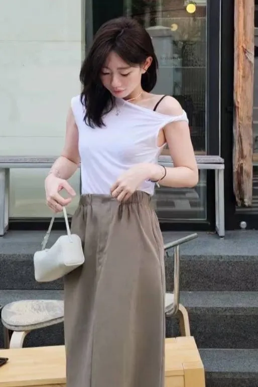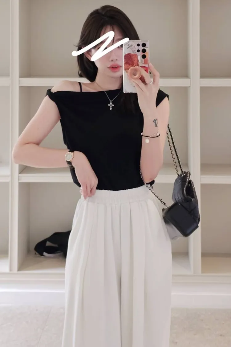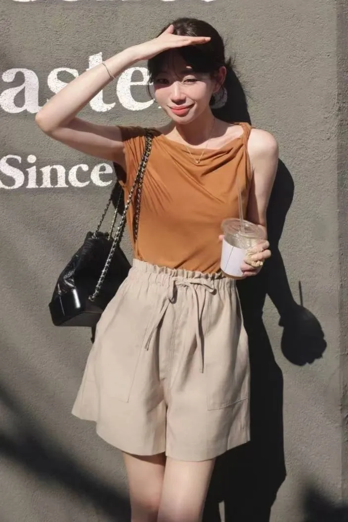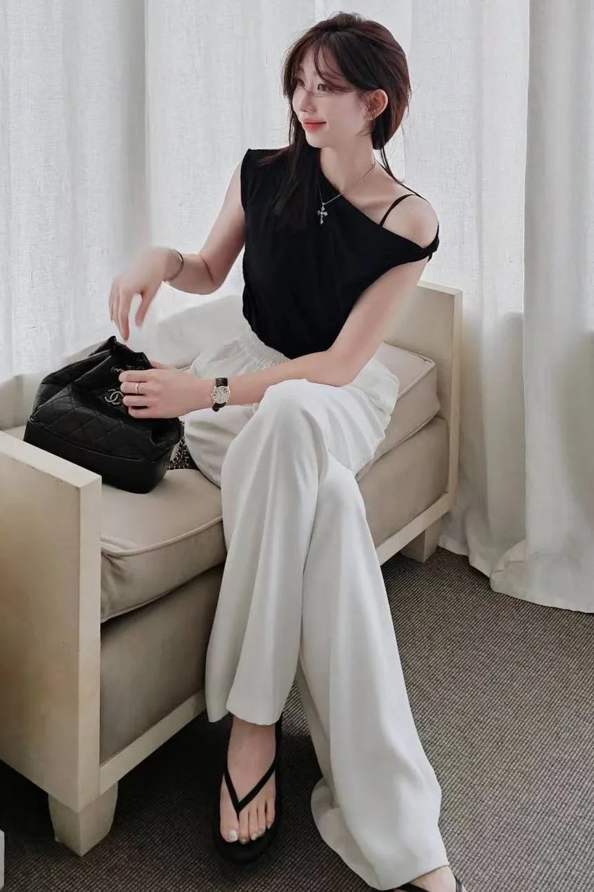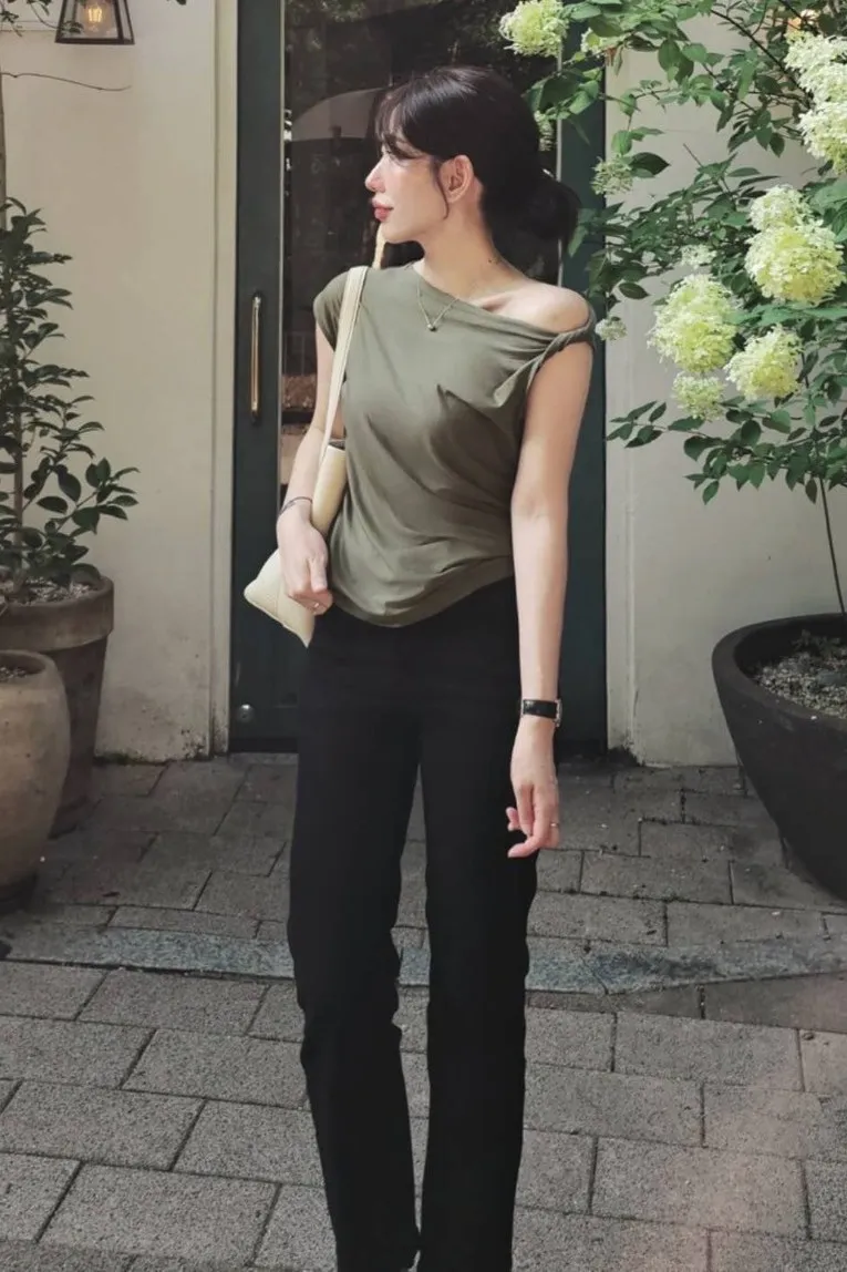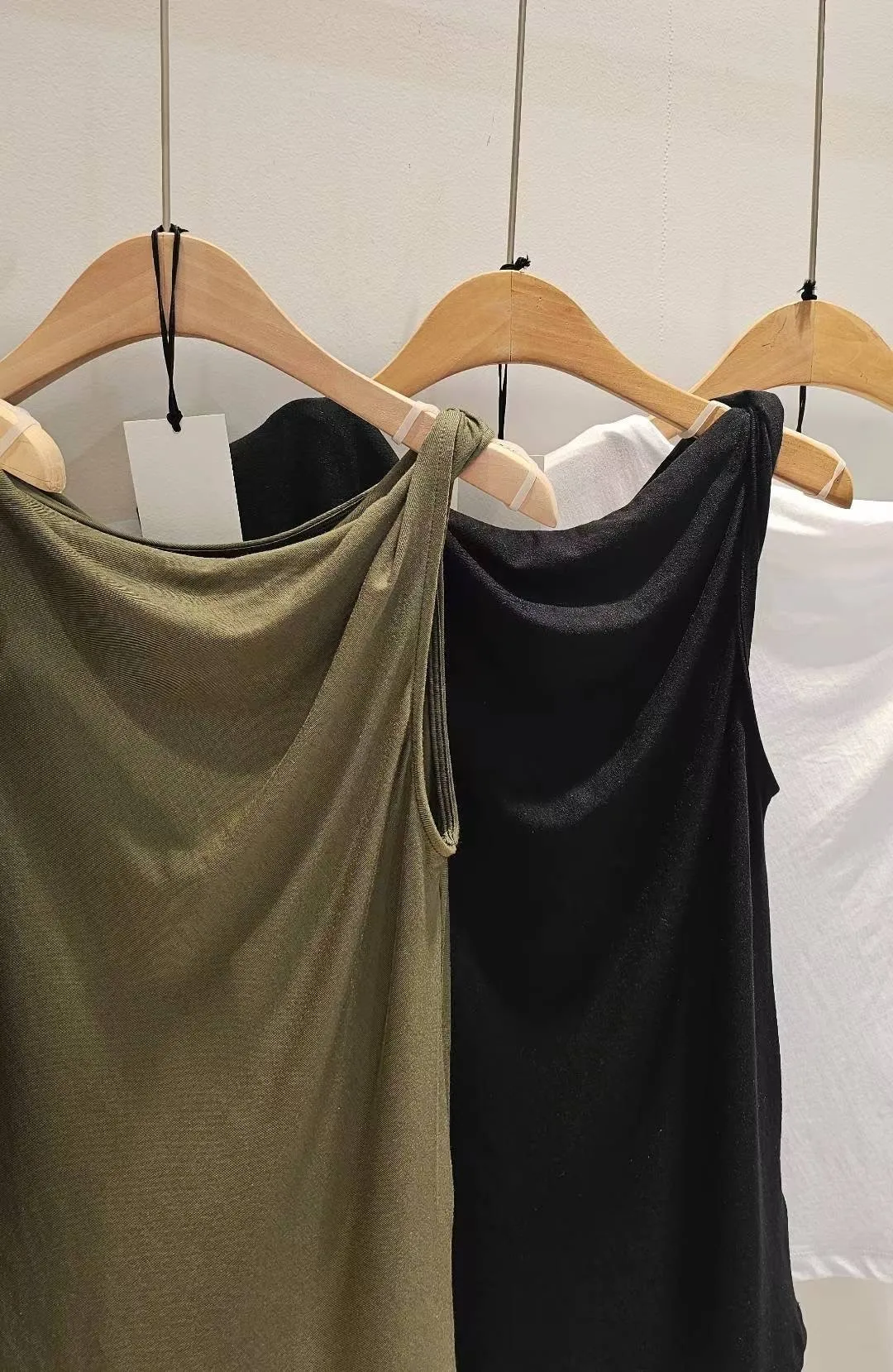 天絲+棉 柔軟親膚 透氣舒適 微光澤 設計感單邊扭結肩帶 適合夏天