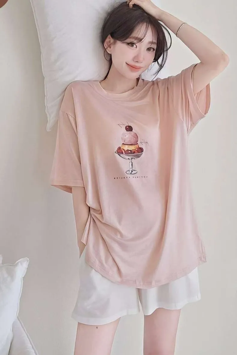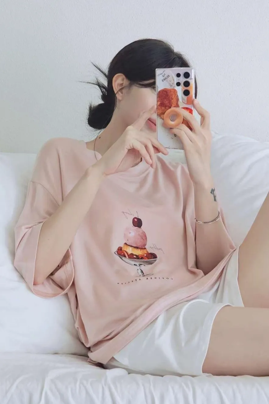 天絲95%+棉 超柔滑 親膚透氣 寬鬆休閒 可愛治癒 有口袋