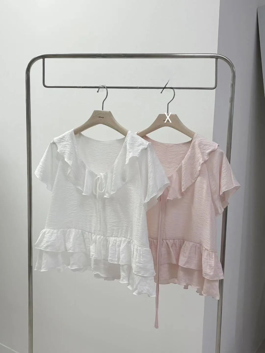 棉+縲縈 荷葉翻領胸綁帶 雙層柔美下擺 細緻紋理 穿到M號