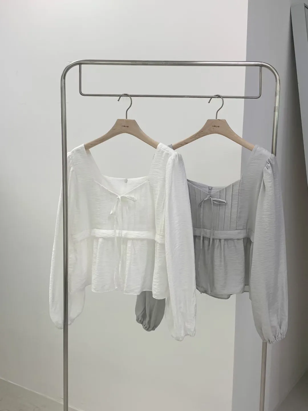 WB414氣質琴弦方領上衣 白 灰 官網價$880 線上價$850