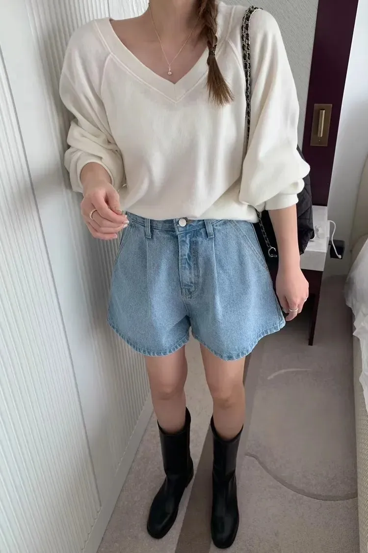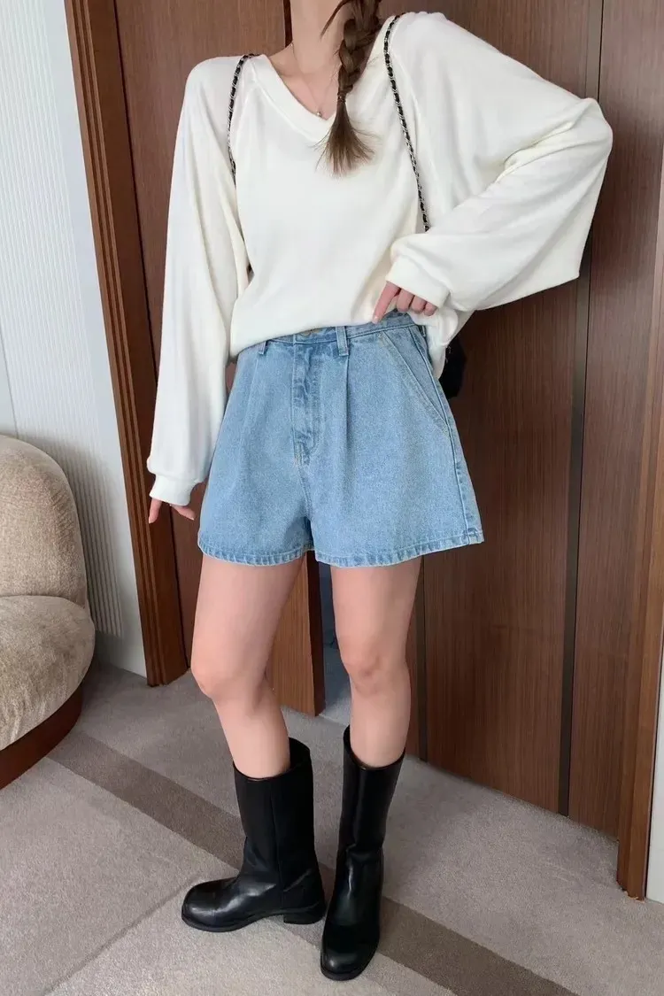WB422回購款丹寧Aline牛仔短褲(原KB162) 藍 黑 S M官網價$829 線上價$799