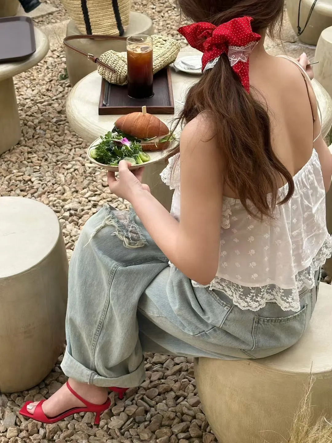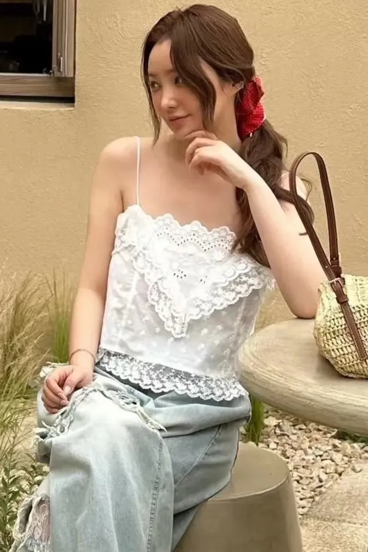 棉+雪紡+網紗 柔軟親膚 下擺透光蕾絲 肩帶不可調 穿到小L