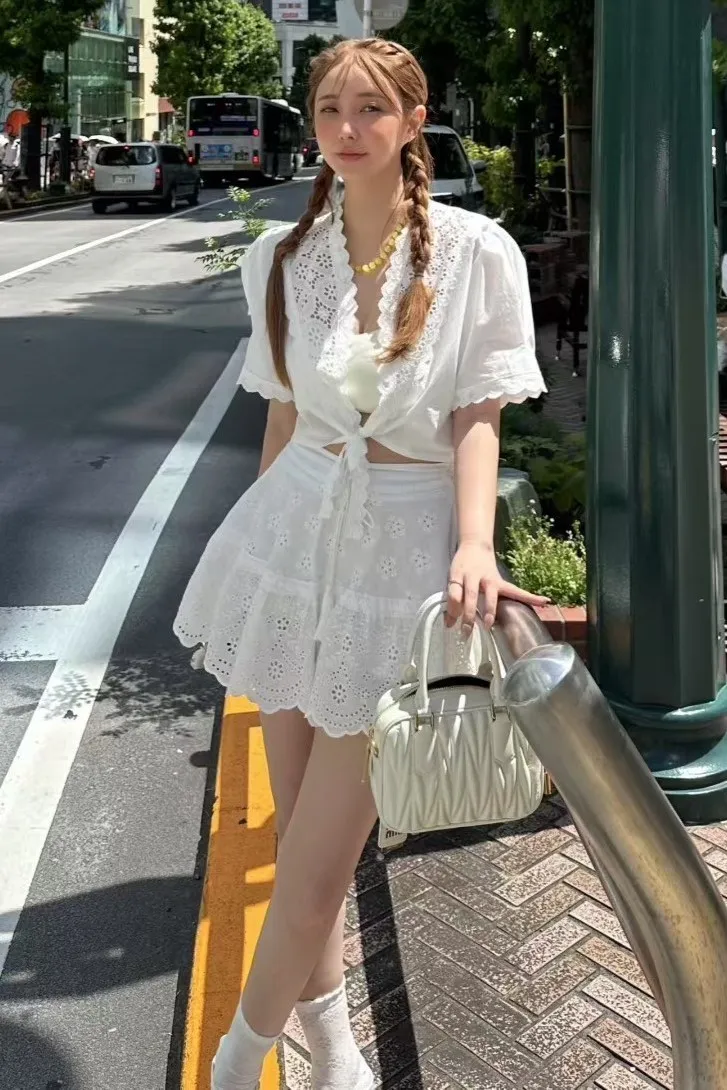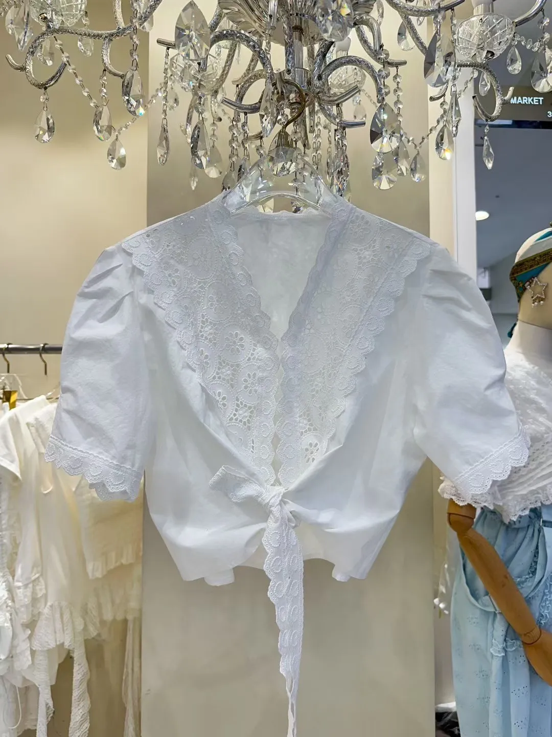 棉 薄款透氣 細緻面料 燒花蕾絲 前腰綁帶 夏天合適