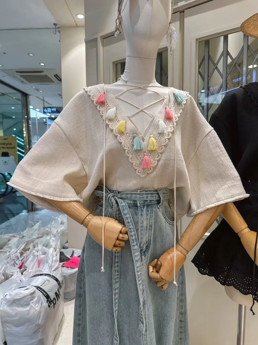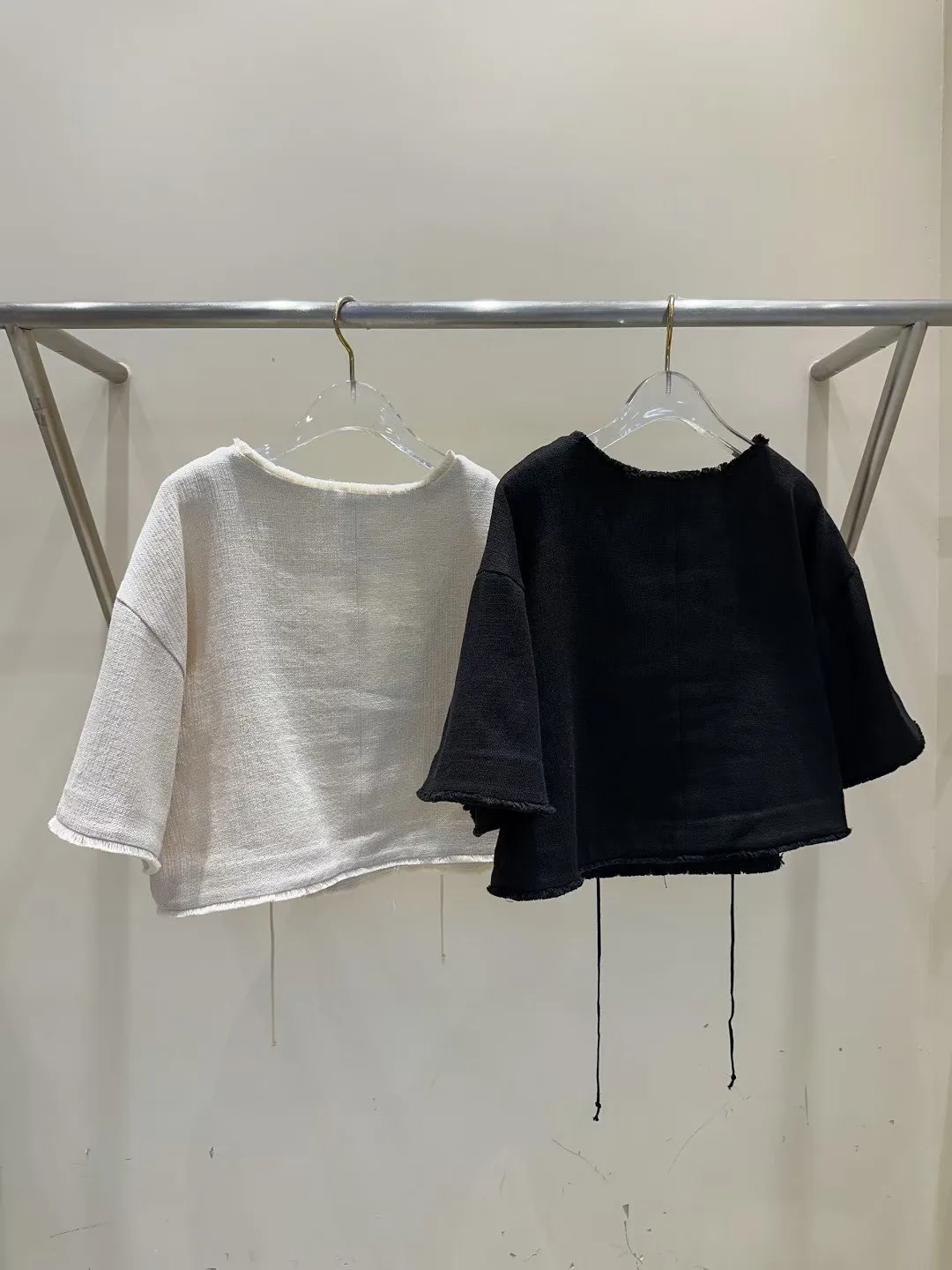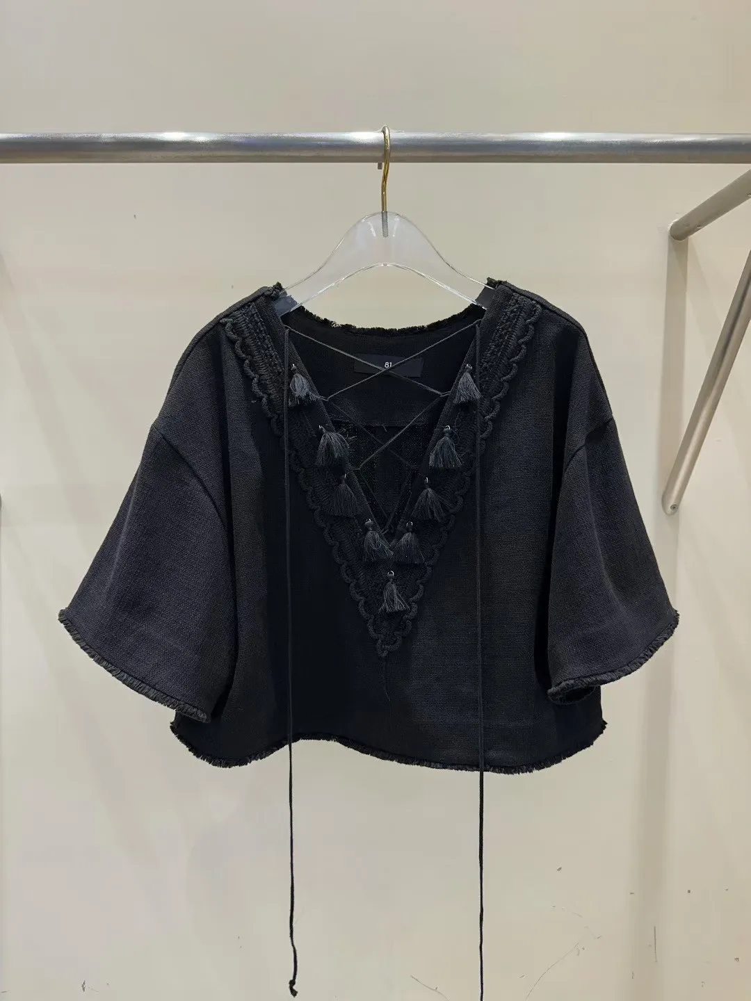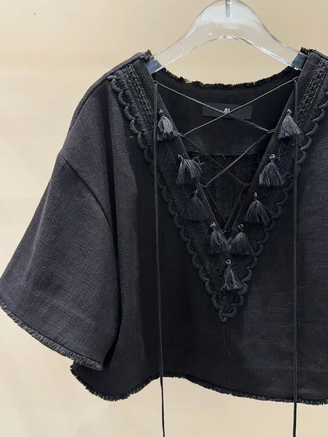 棉+亞麻 細緻面料 手工流蘇 五分寬袖 空間舒適