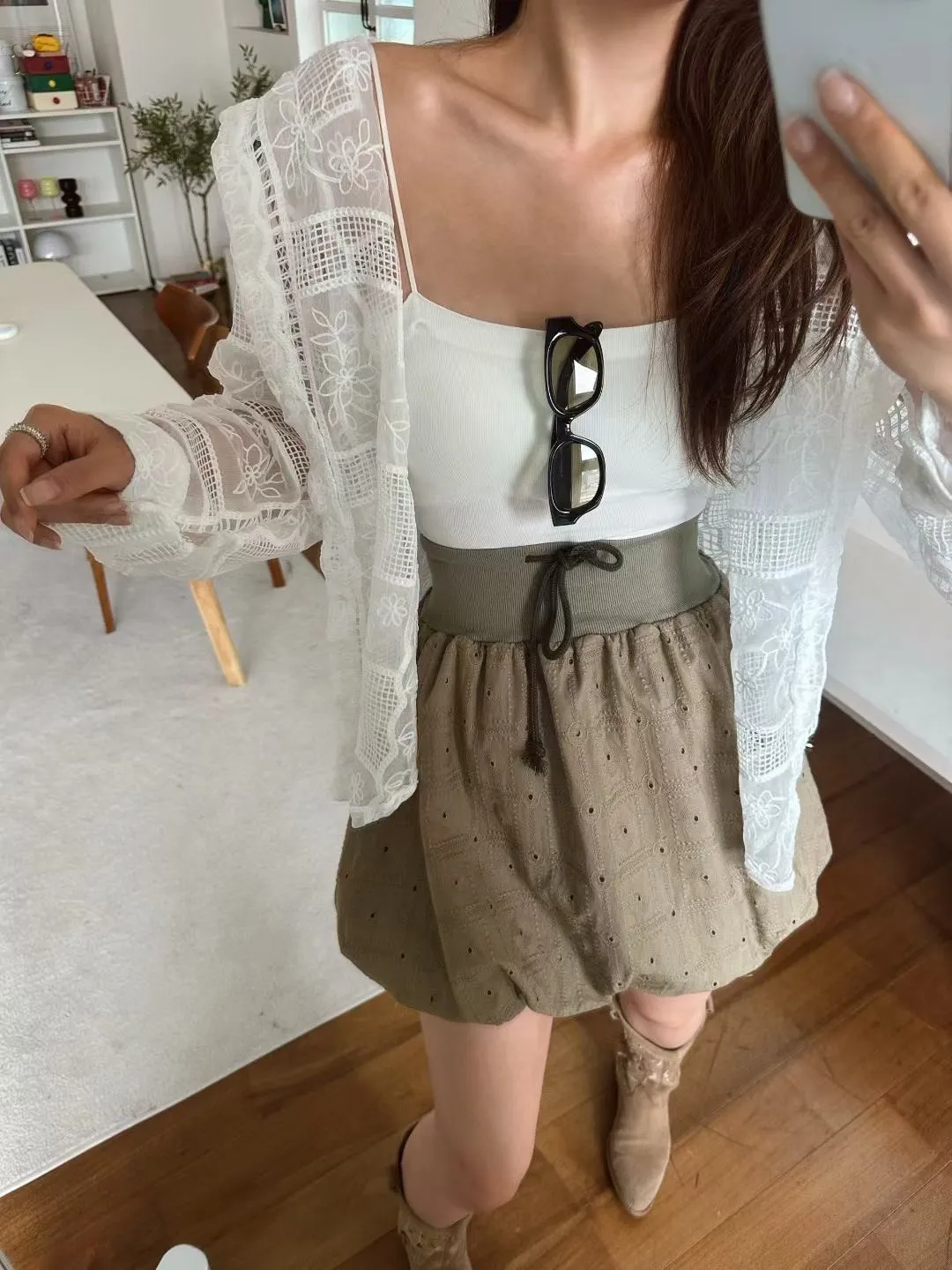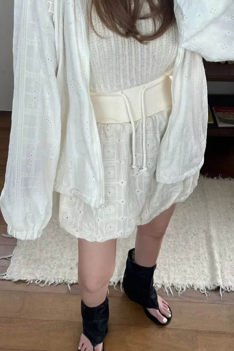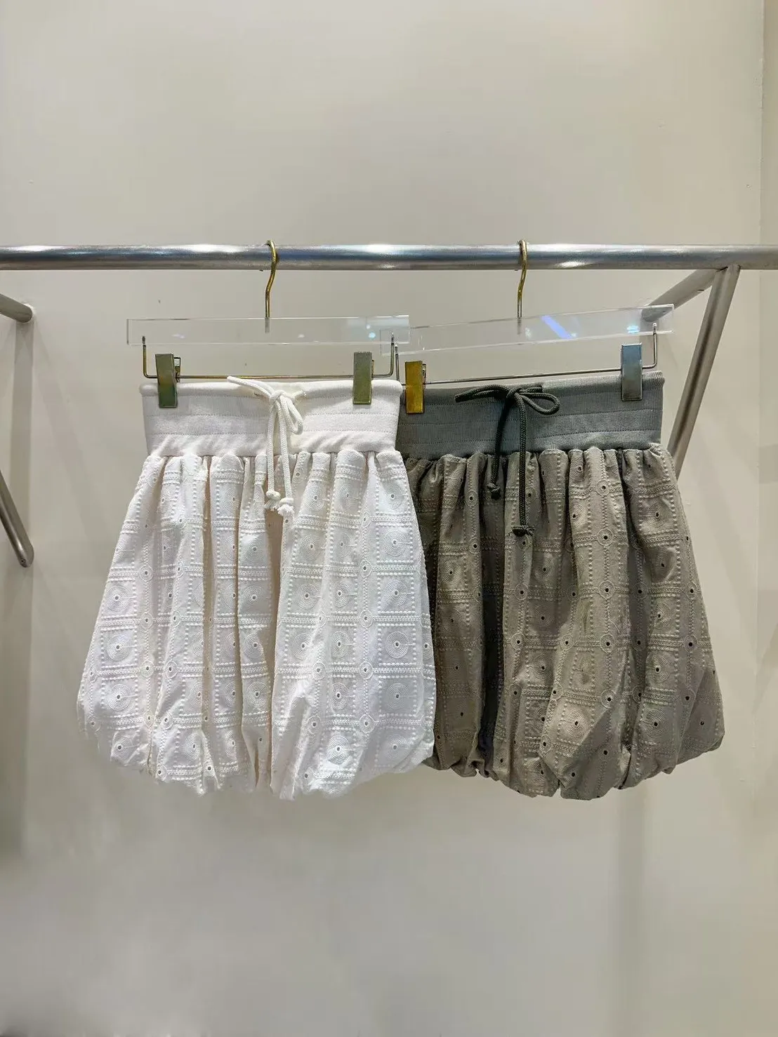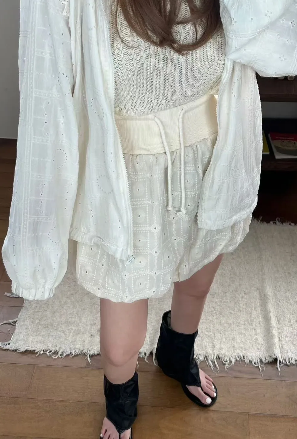 棉 燒花蕾絲 寬腰鬆緊有抽繩 細節配色 南瓜顯瘦細腿版型 無口袋