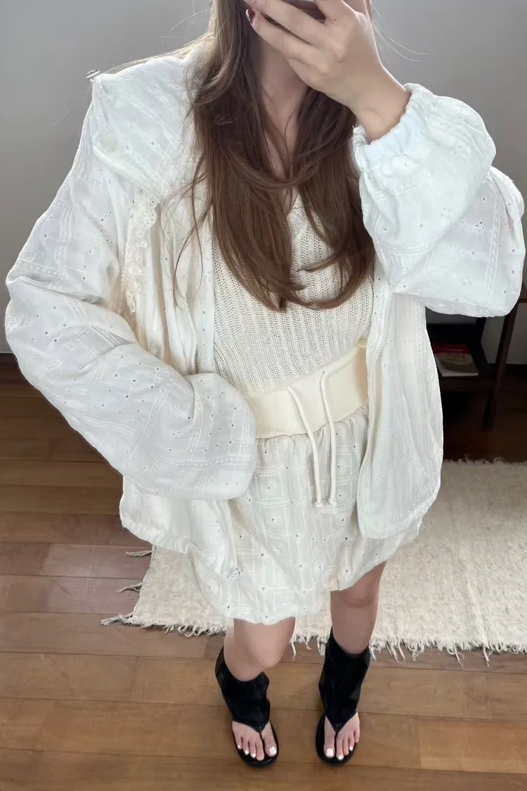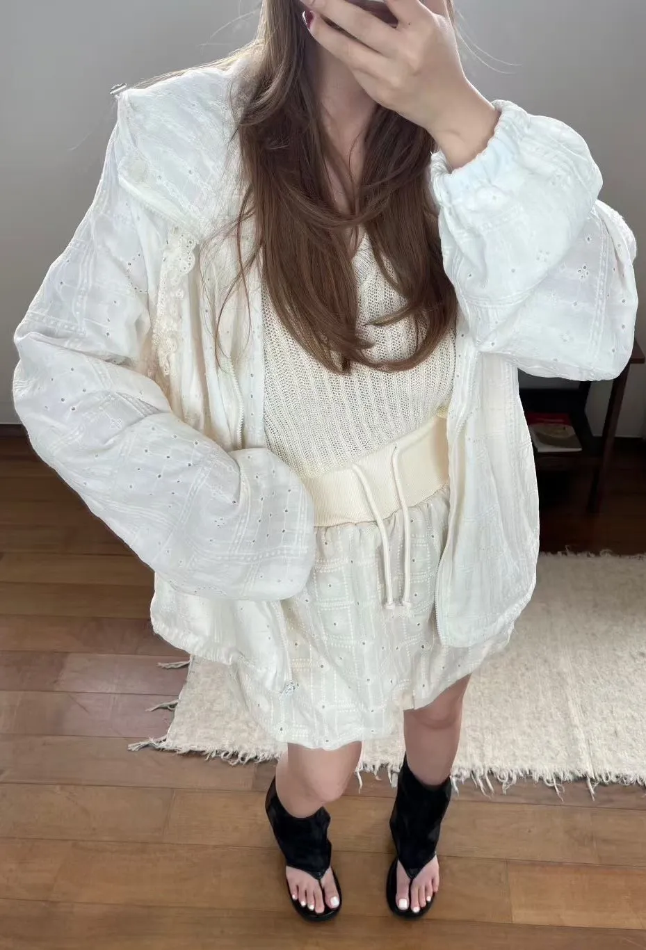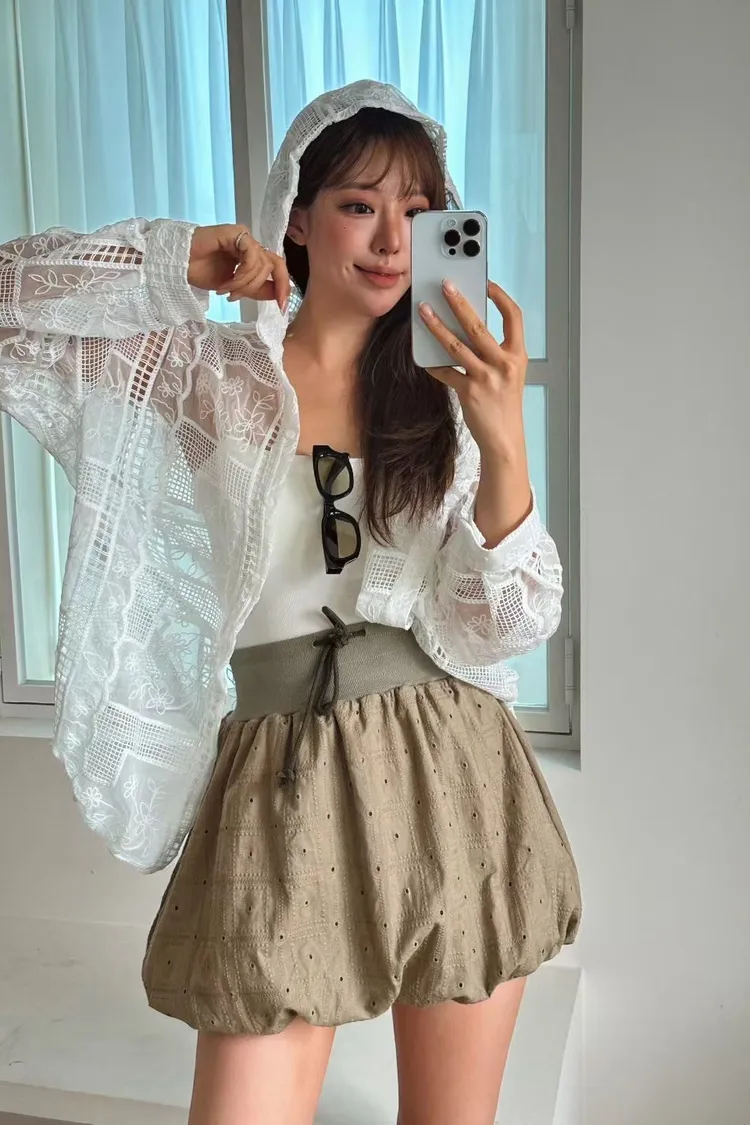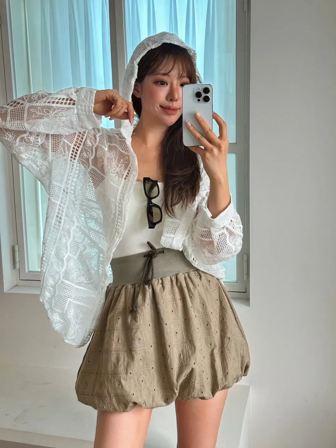 棉 燒花蕾絲 寬腰鬆緊有抽繩 細節配色 南瓜顯瘦細腿版型 無口袋