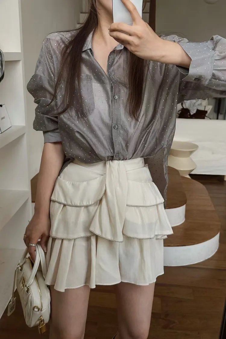 天絲 薄款涼感 親膚舒適 藝術細閃鑽材質 低調華麗 單口袋排釦