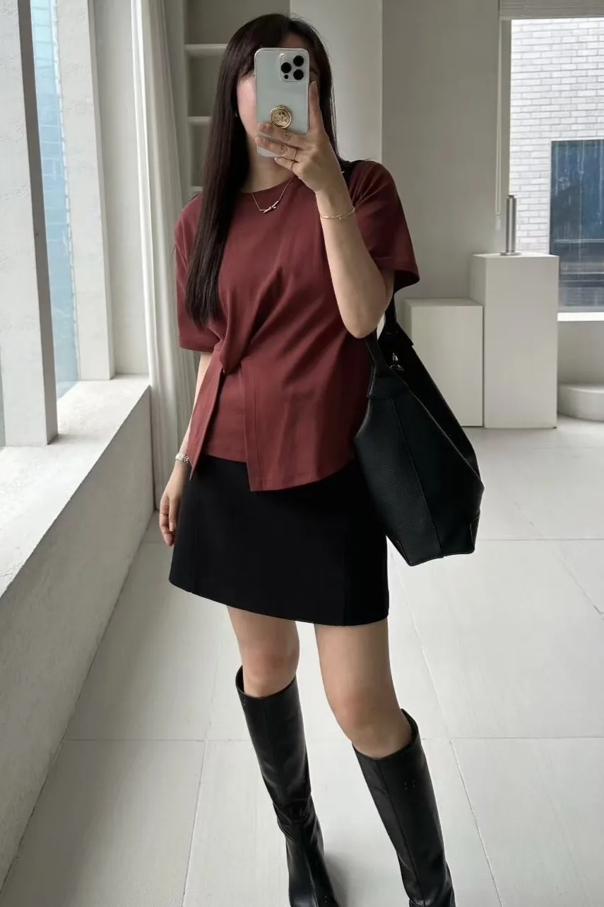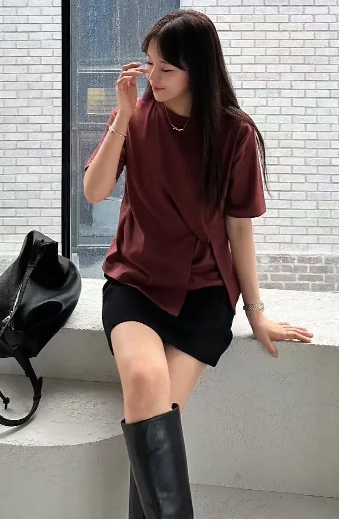 棉+彈力 透氣舒適 扭結顯瘦遮腹設計 微磅數面料 夏秋皆宜 L號友善