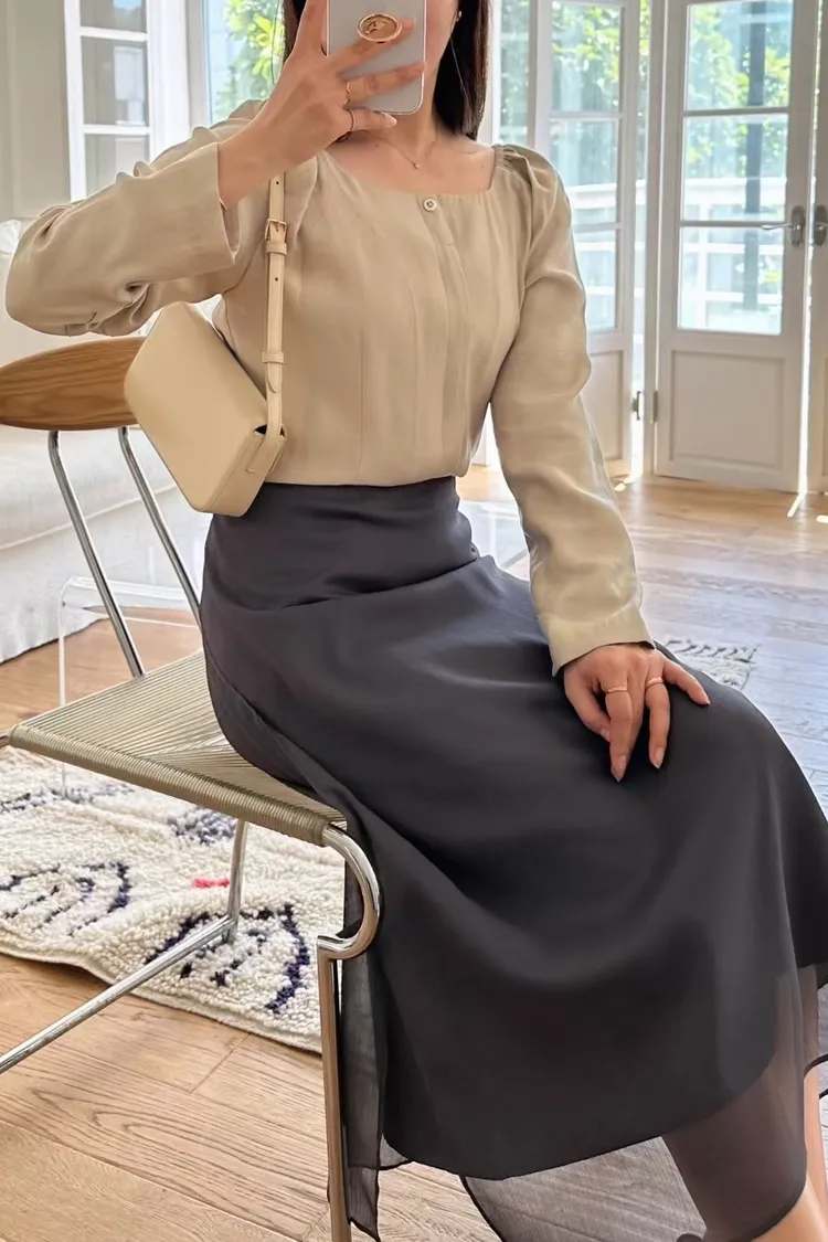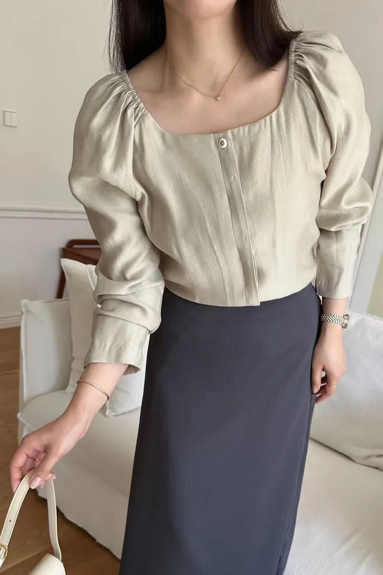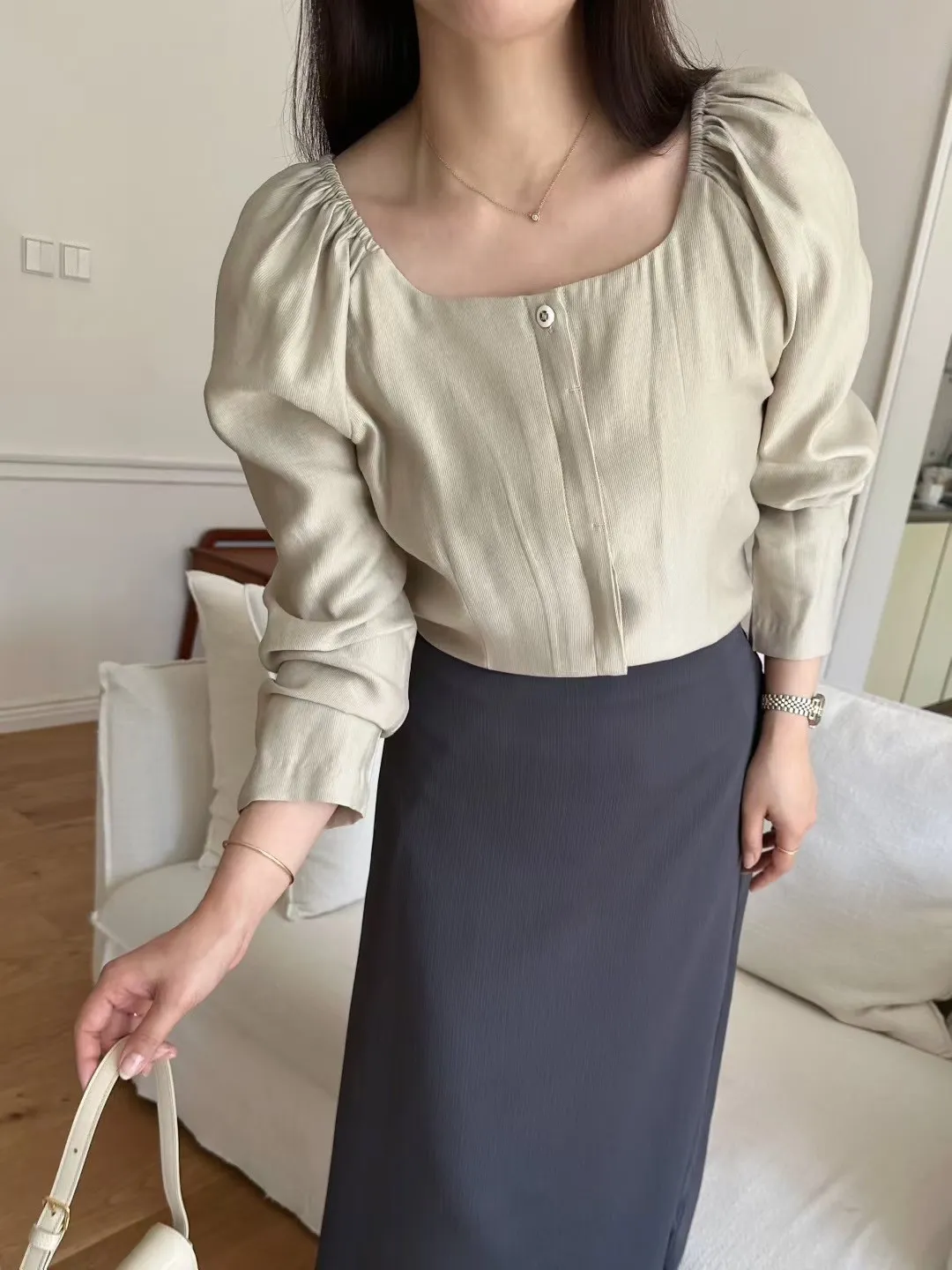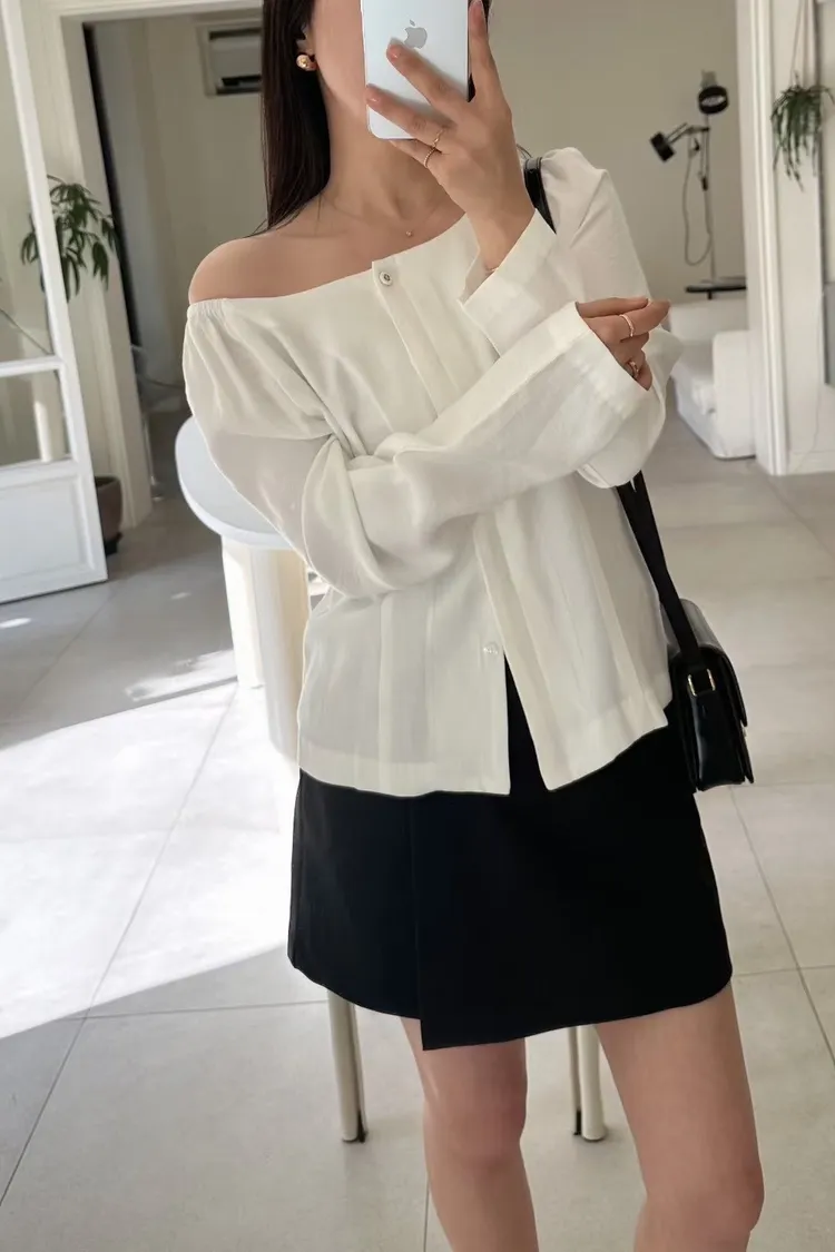 縲縈88%+聚酯 超好摸 涼感舒適 可拉一字領 寬領腰身剪裁