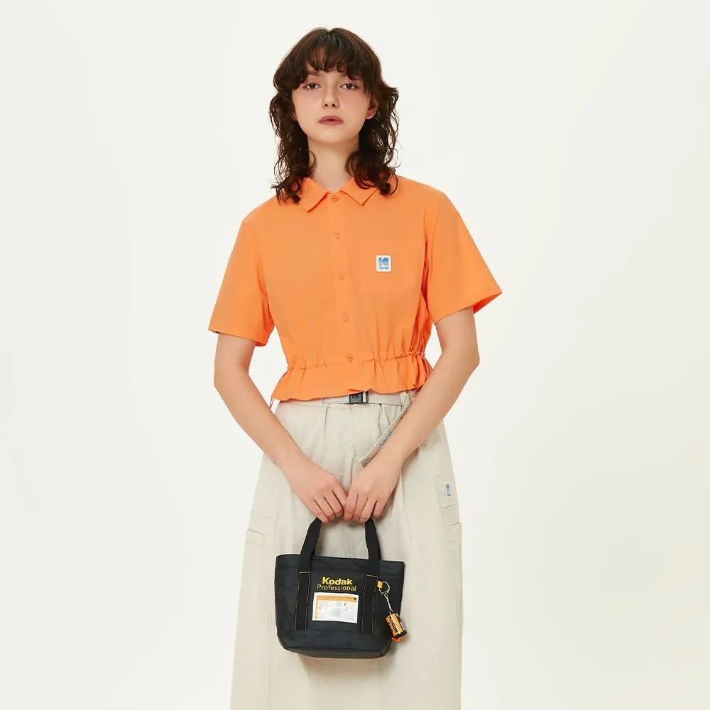 尼龍+聚酯 挺度面料 肩帶可調 送一個膠捲吊飾 底部硬挺 壓釦閉合