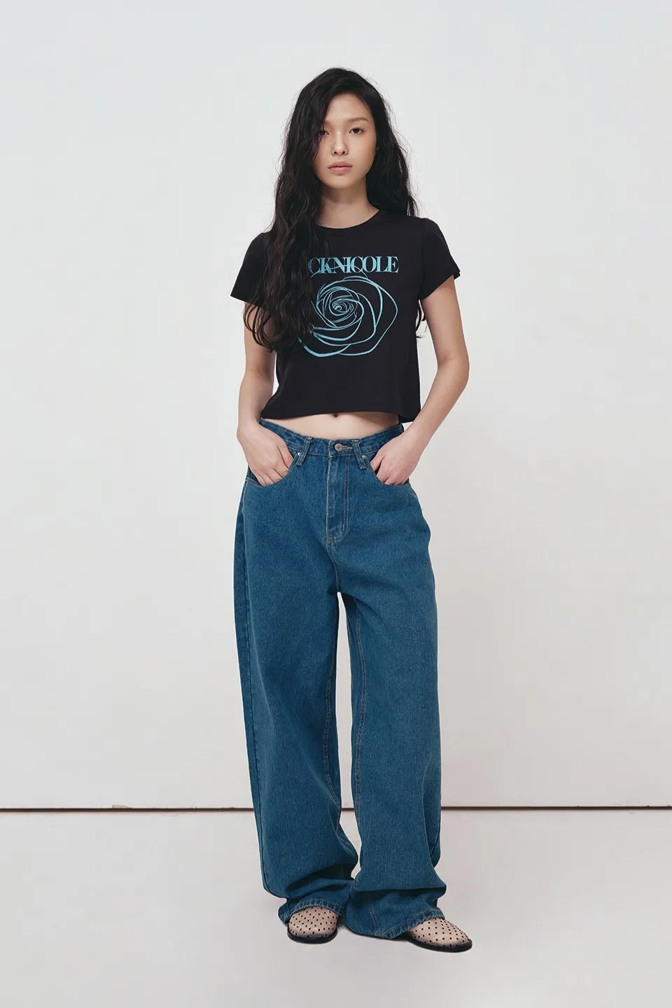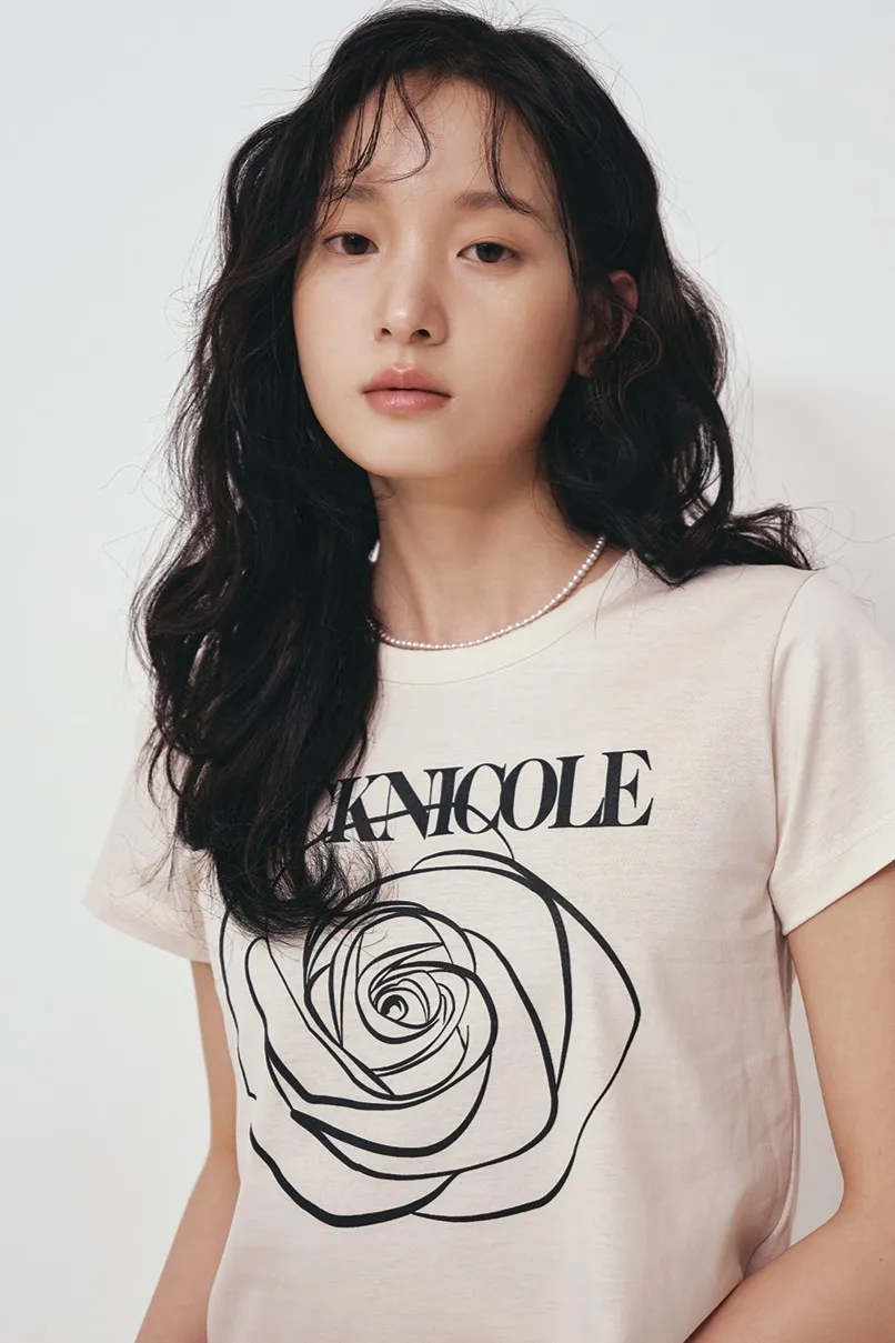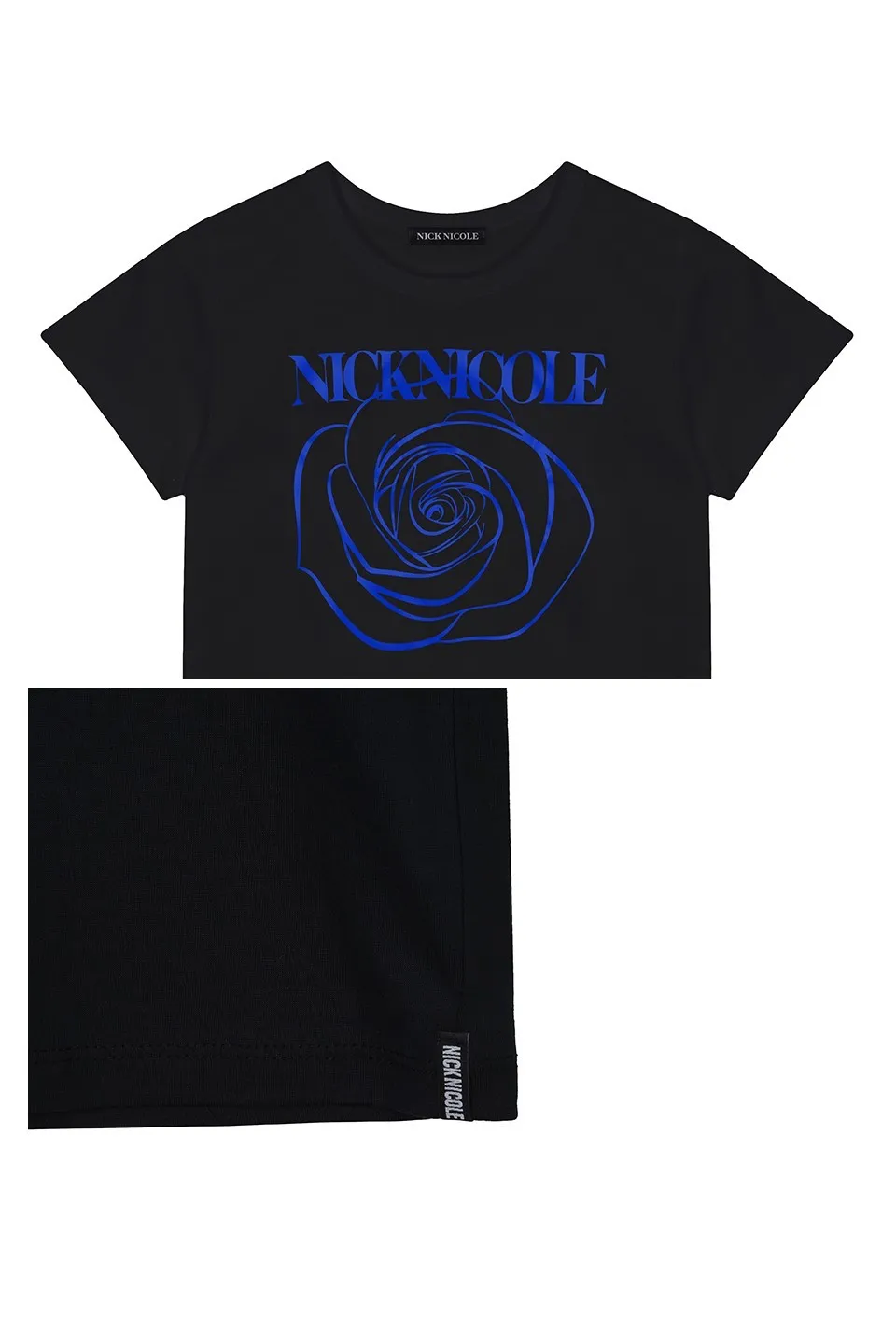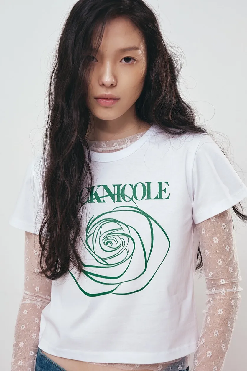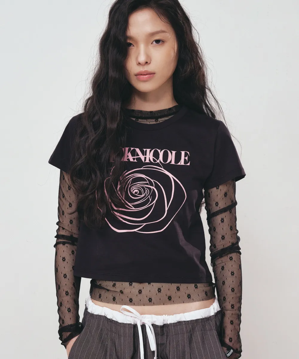 WB594經典Nick nicole玫瑰花Tshirt(短版) 黑淺藍 黑紅 黑粉 黑深藍 白銀 白 粉 白綠 白藍 黃黑 官網價$899 線上價$869