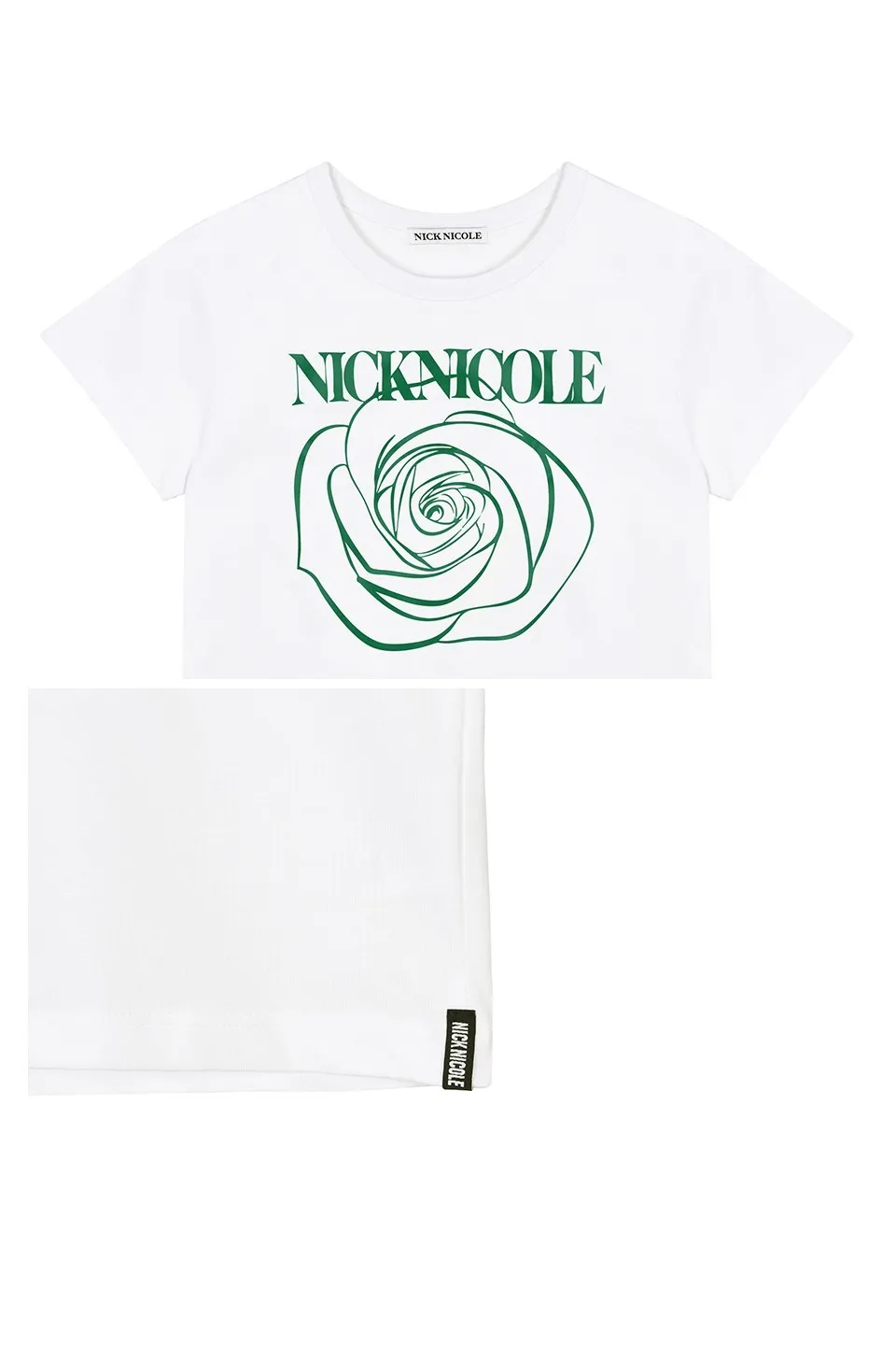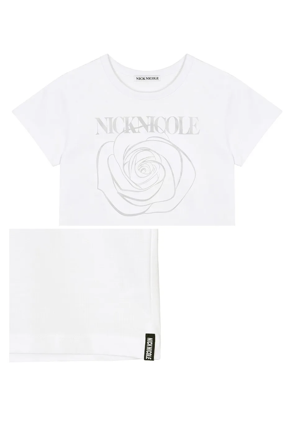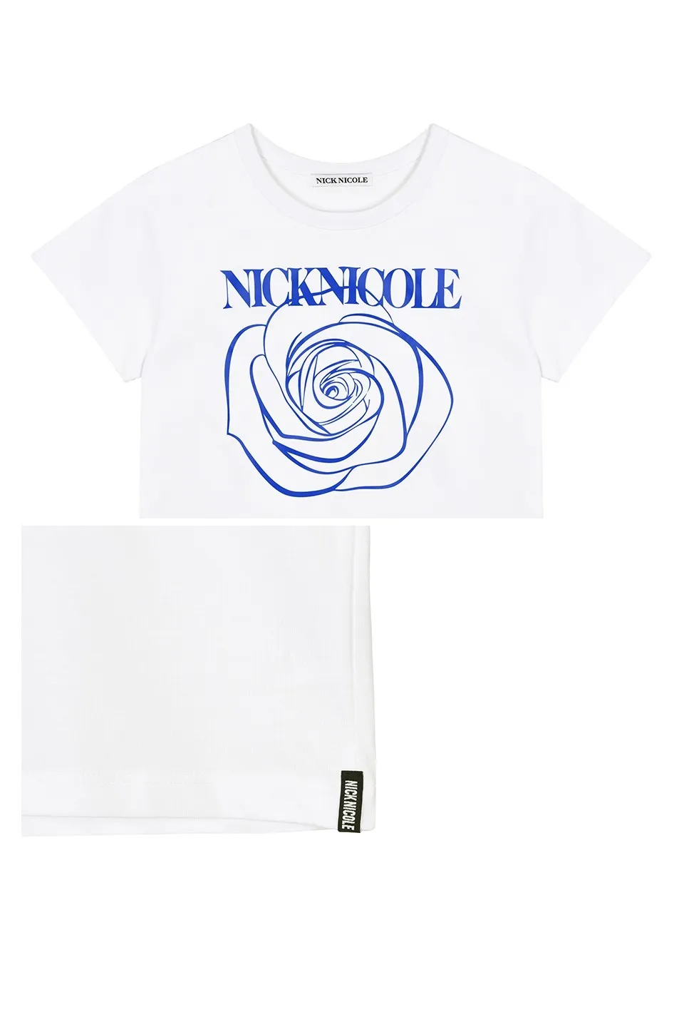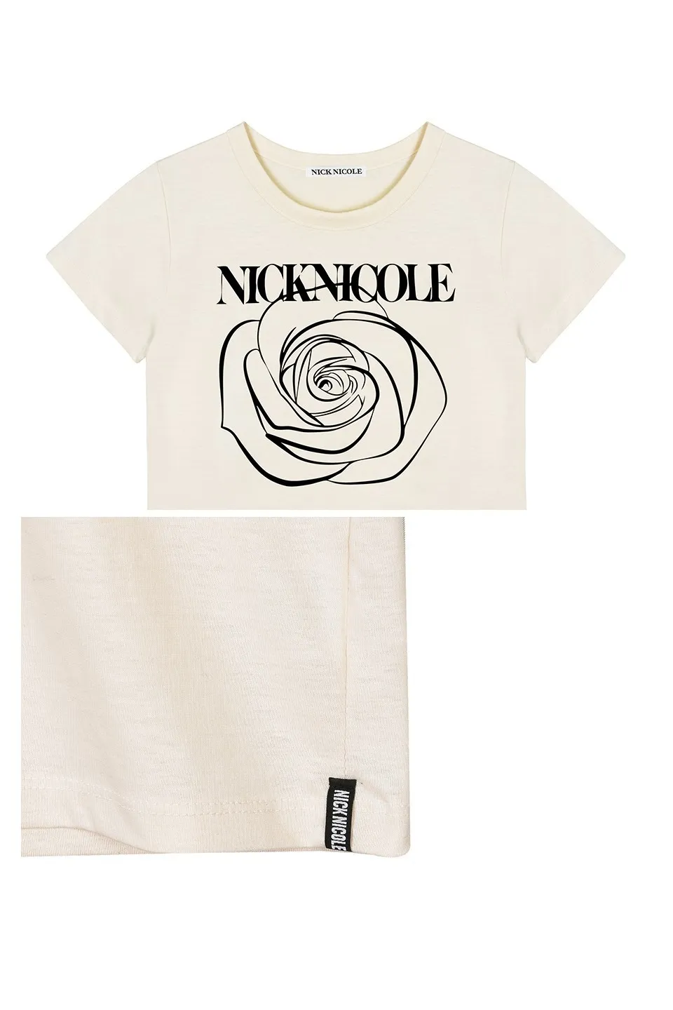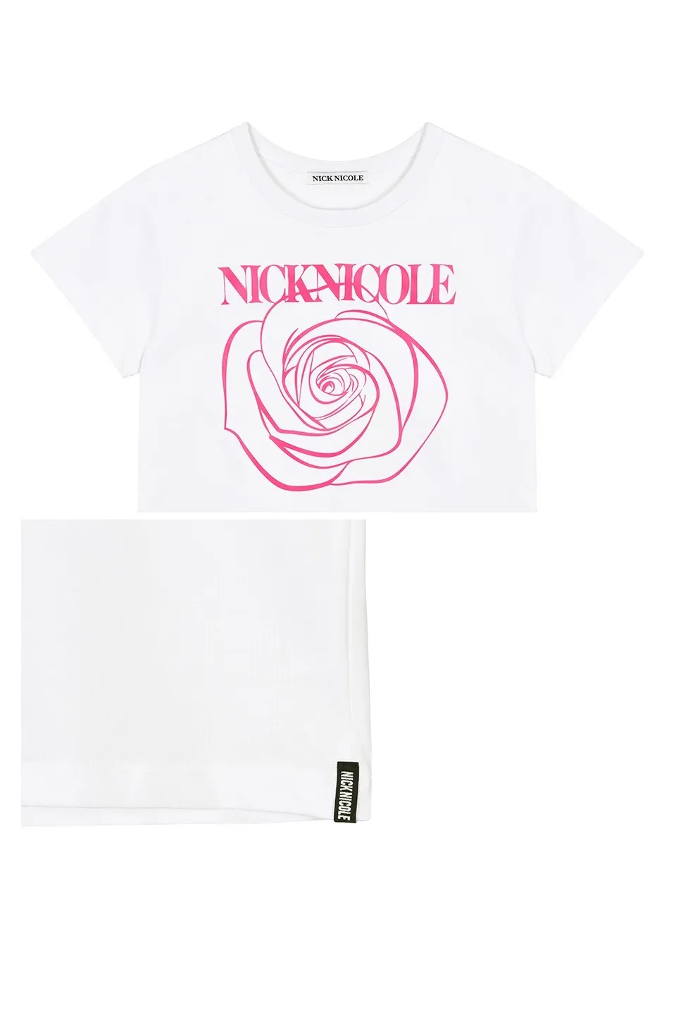 短上衣飾有 Nick & Nicole 標誌性玫瑰刺繡 採用