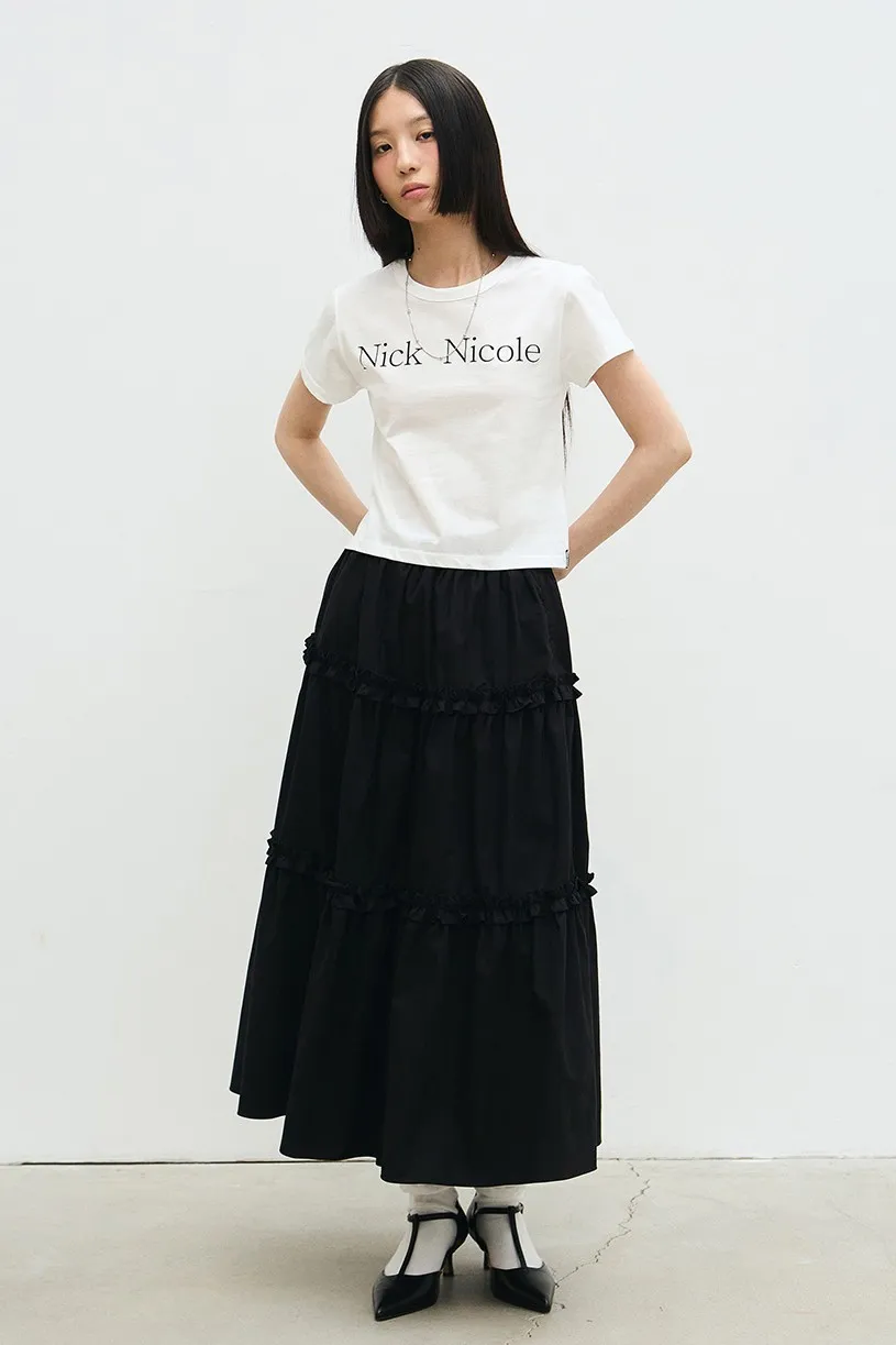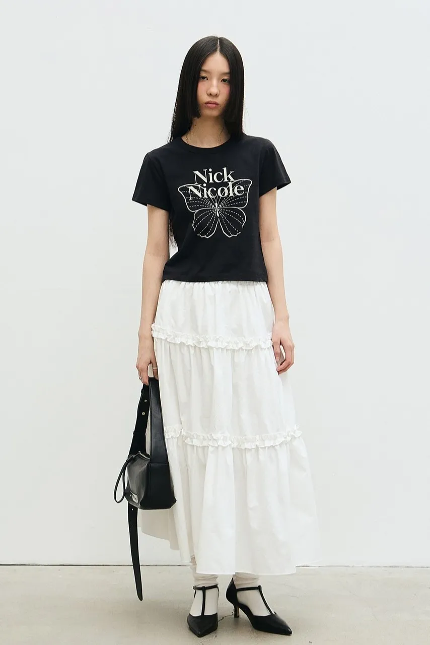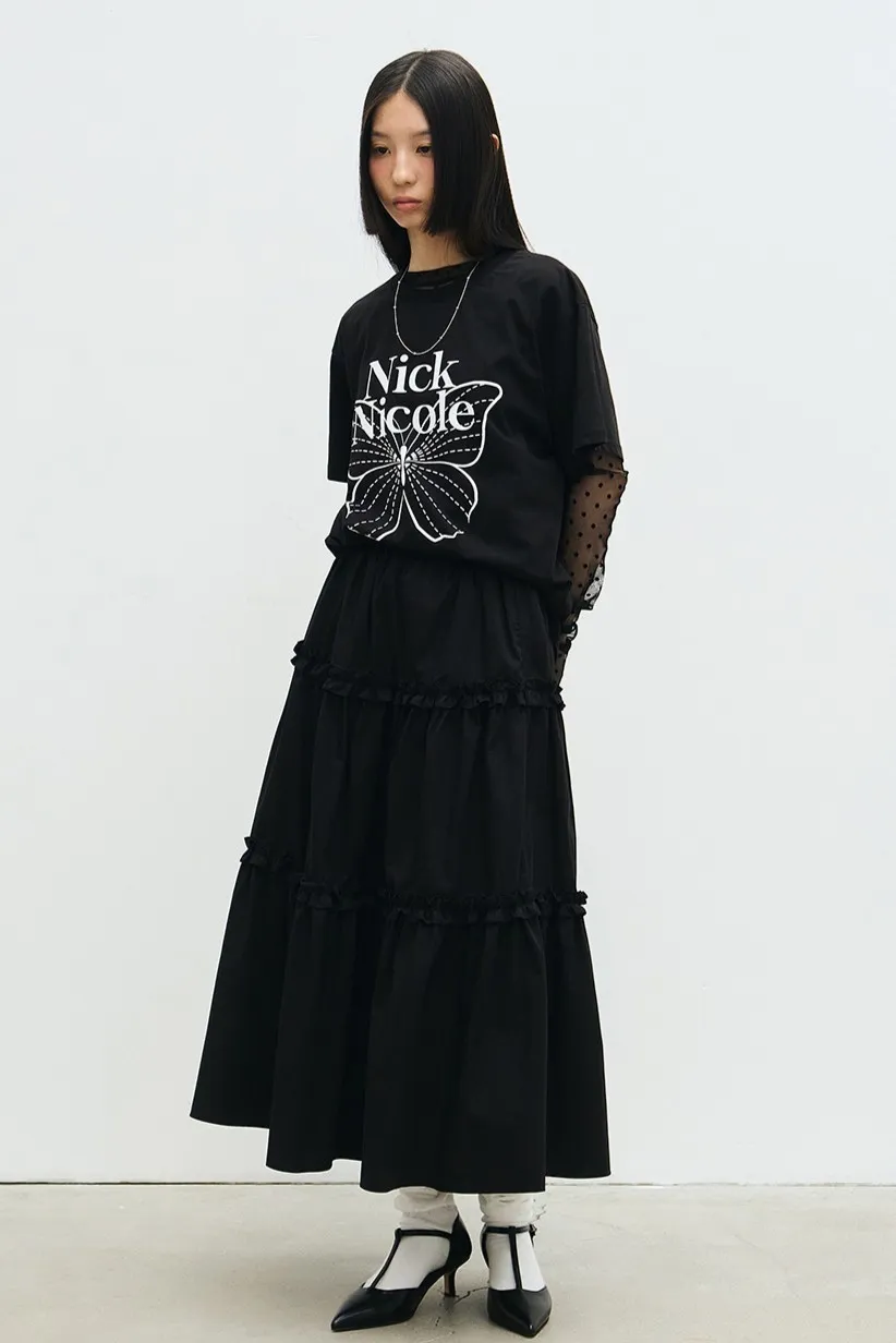 WB601經典Nick nicole荷葉蛋糕長裙 白 黑 官網價$2580 線上價$2550