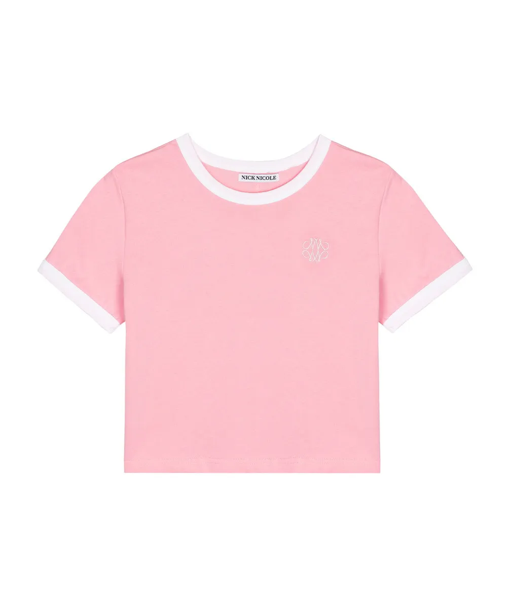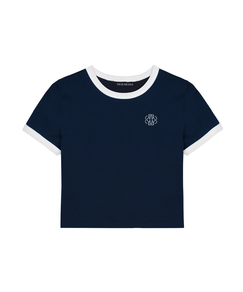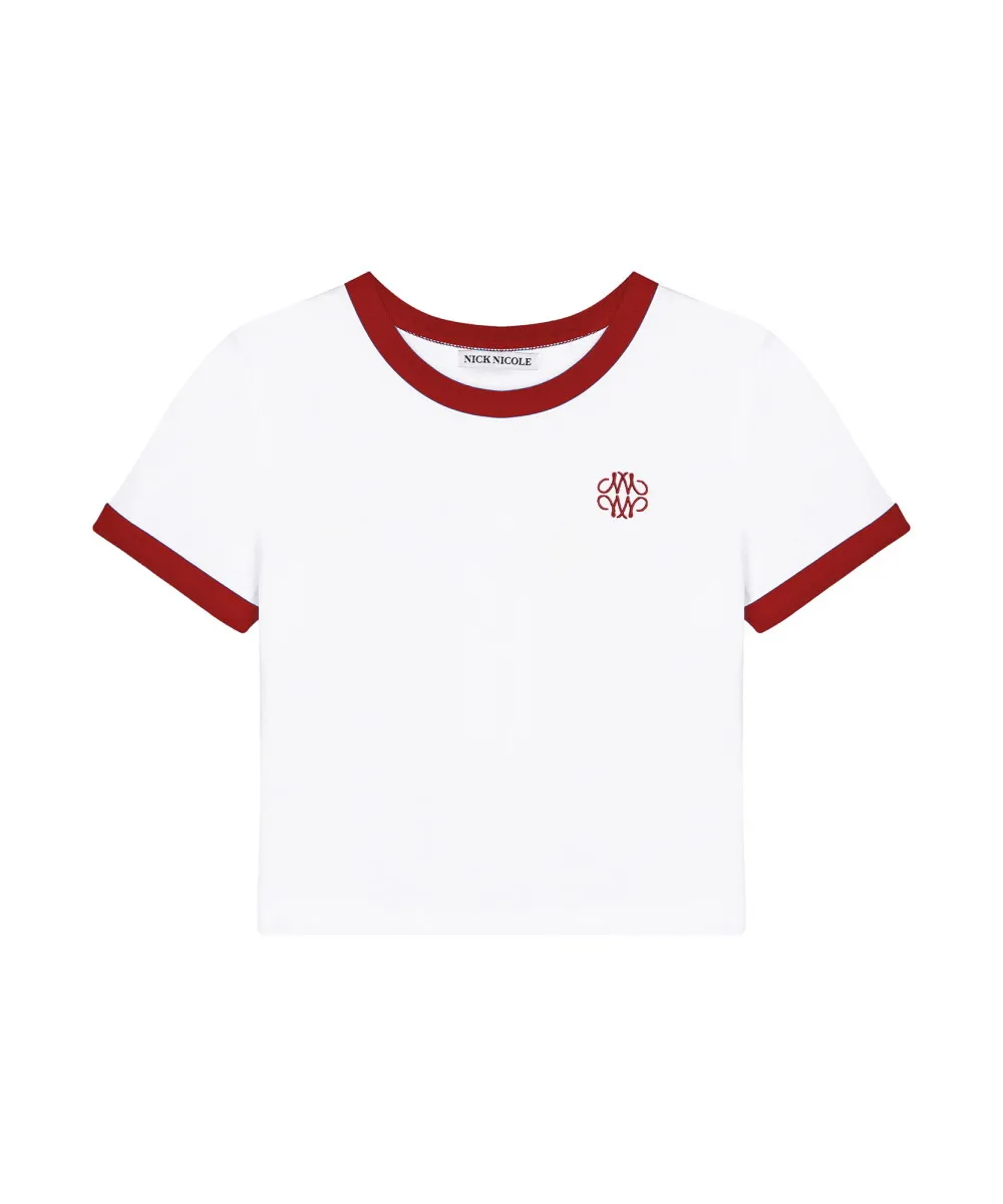WB602設計感草寫LOGO滾邊Tshirt(短版) 白黑 白紅 粉白 深藍白 官網價$990 線上價$960