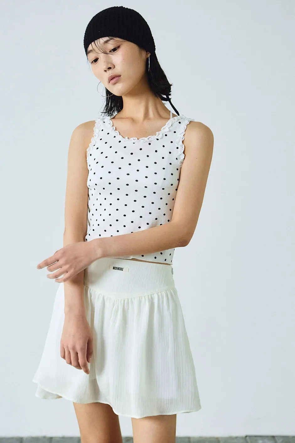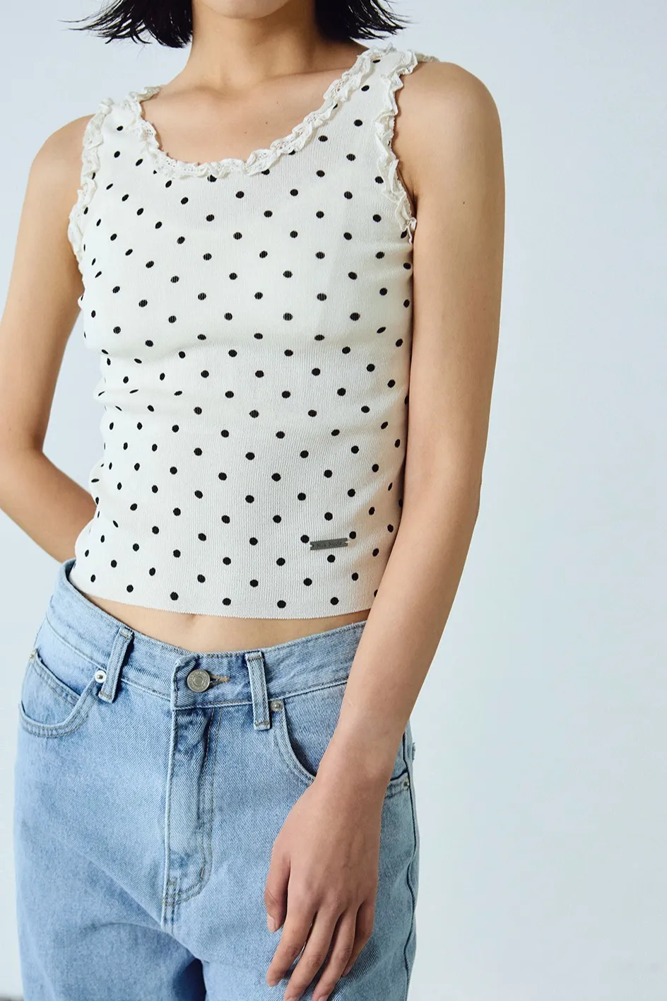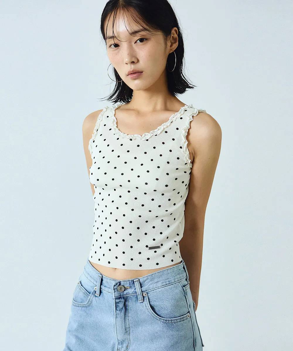 基本款圓點無袖上衣,輪廓簡約。