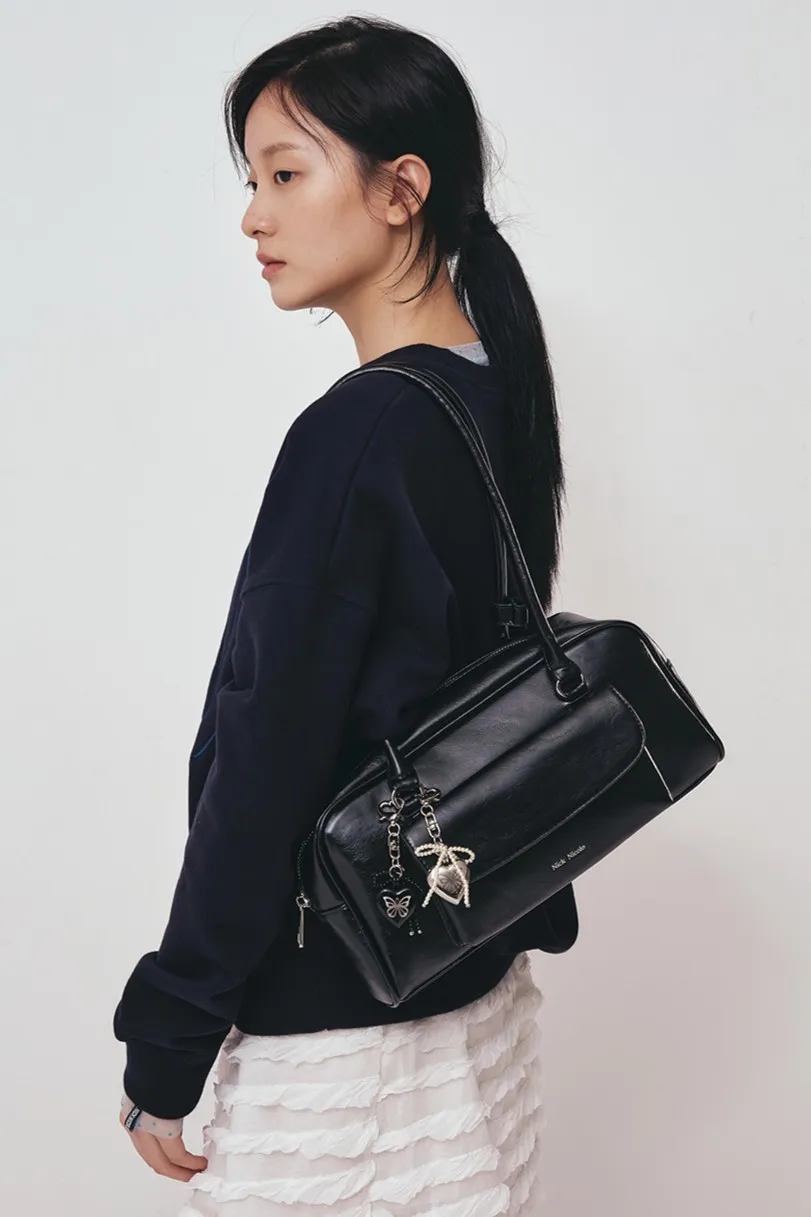 合成皮革 高級視覺 亮面皮革 可雙面背 拉鍊閉合