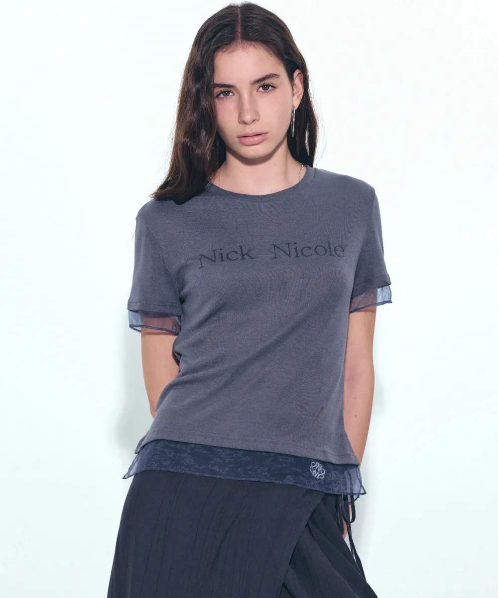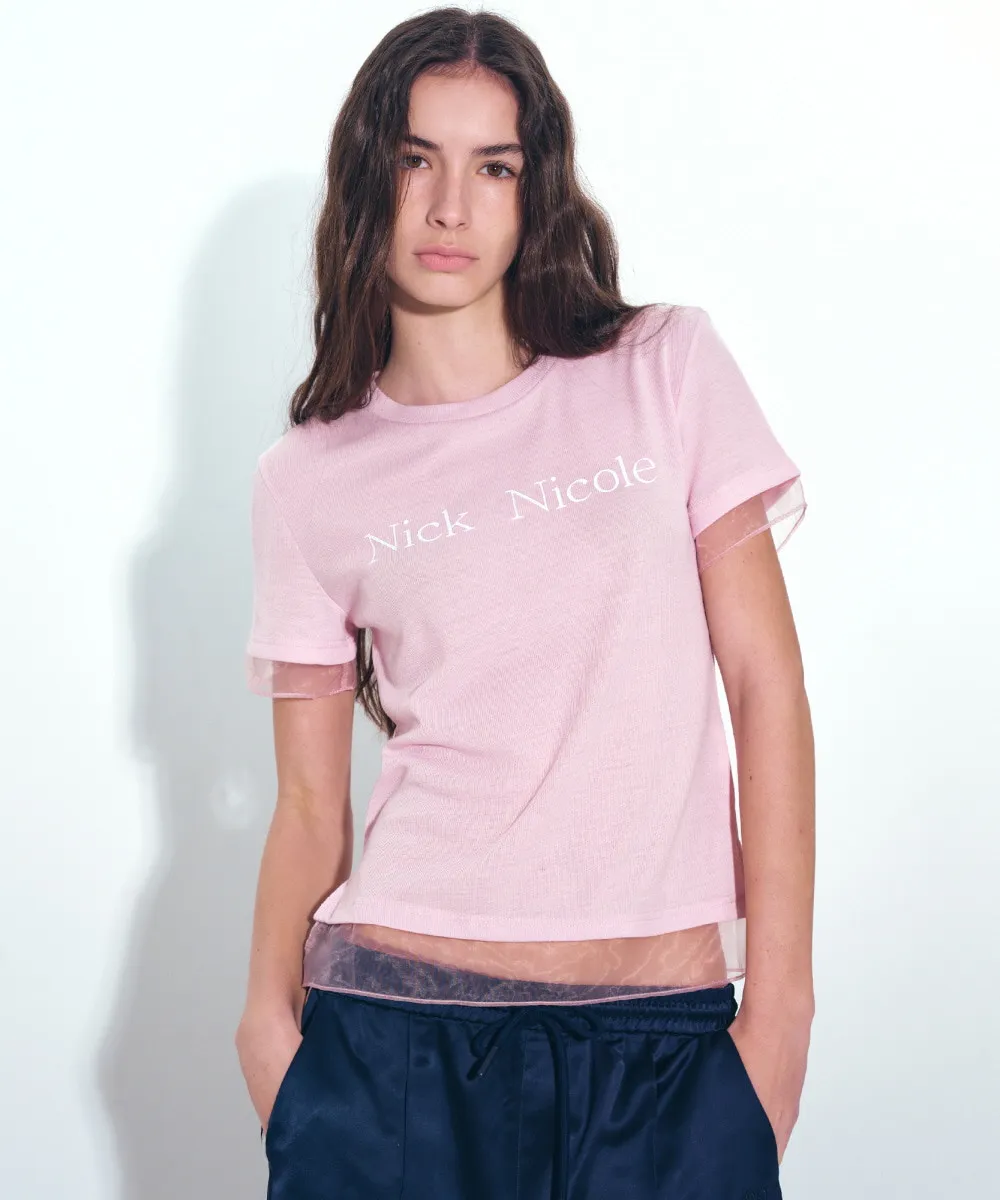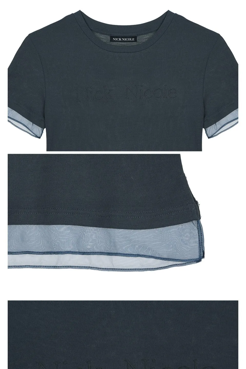 WB608細腰透光網紗下擺Tshirt 白 粉 紅 灰 黑 官網價$1350 線上價$1320