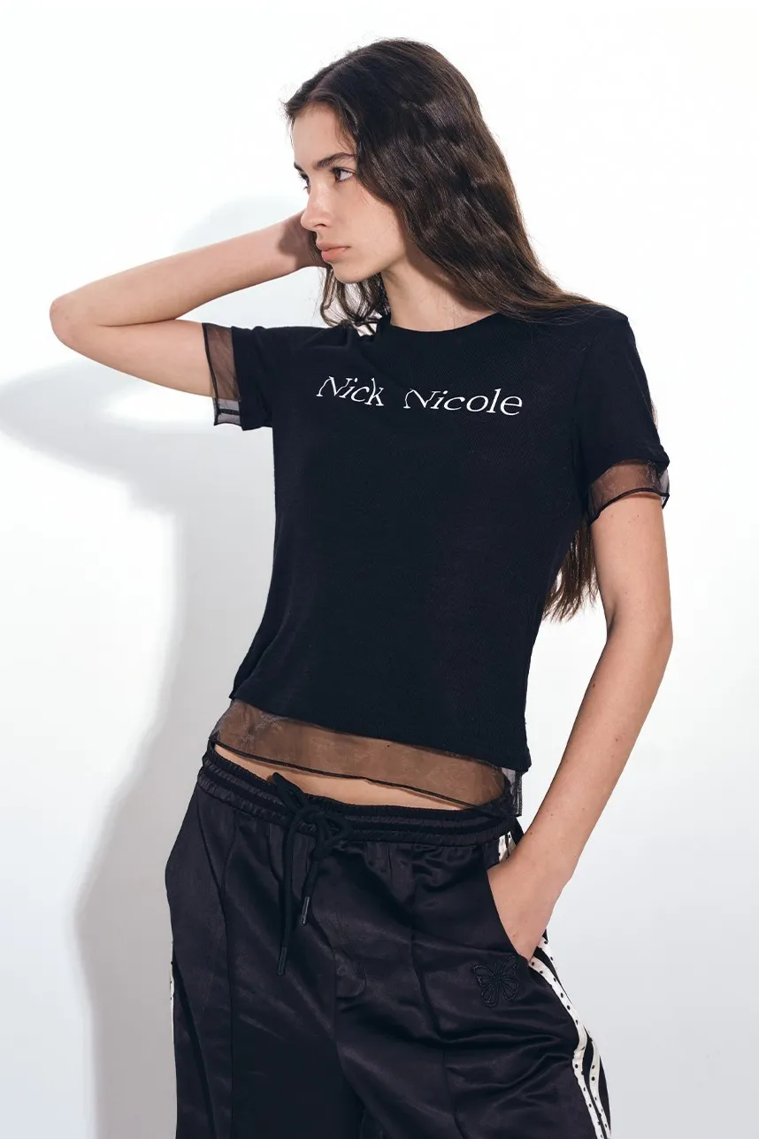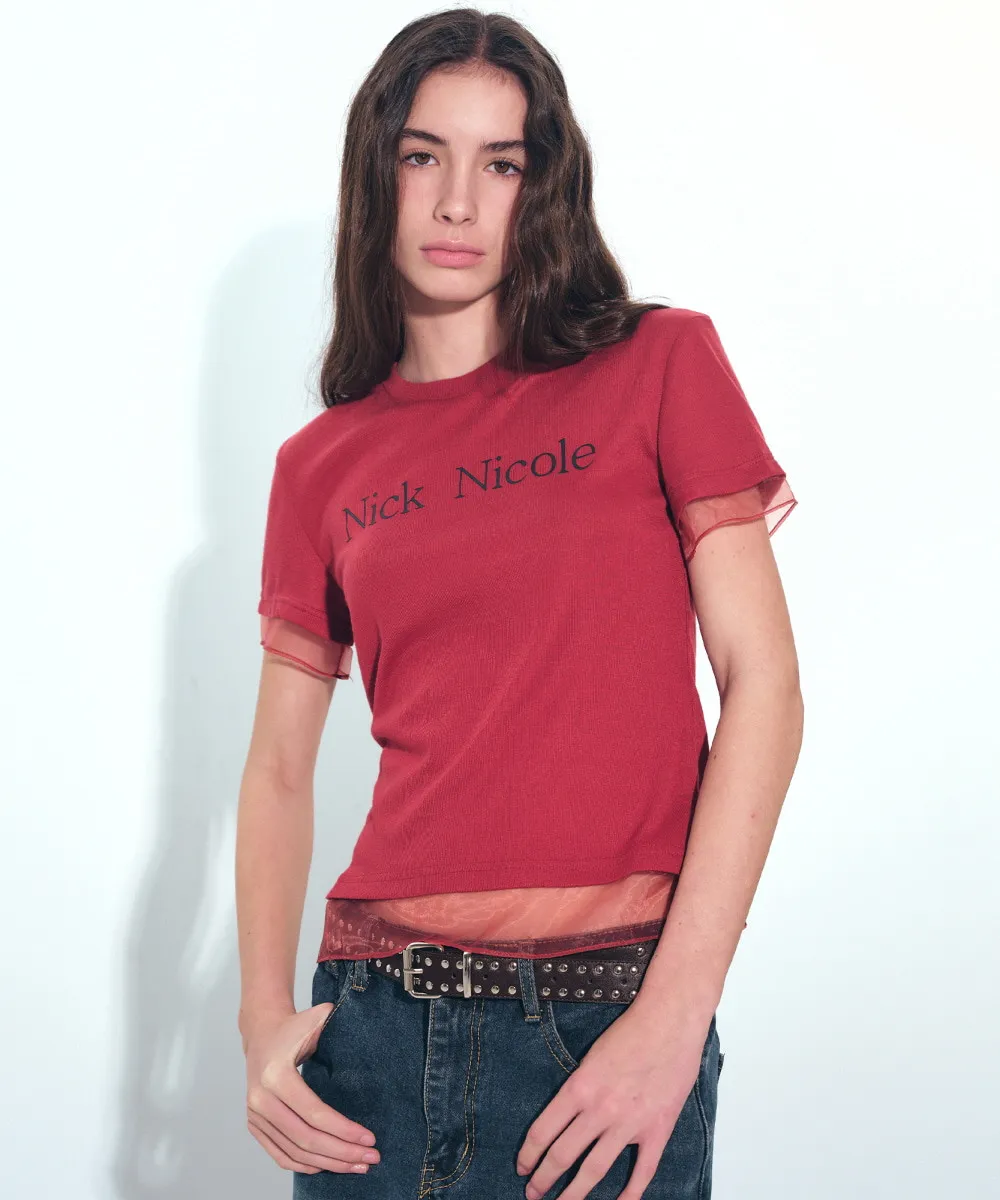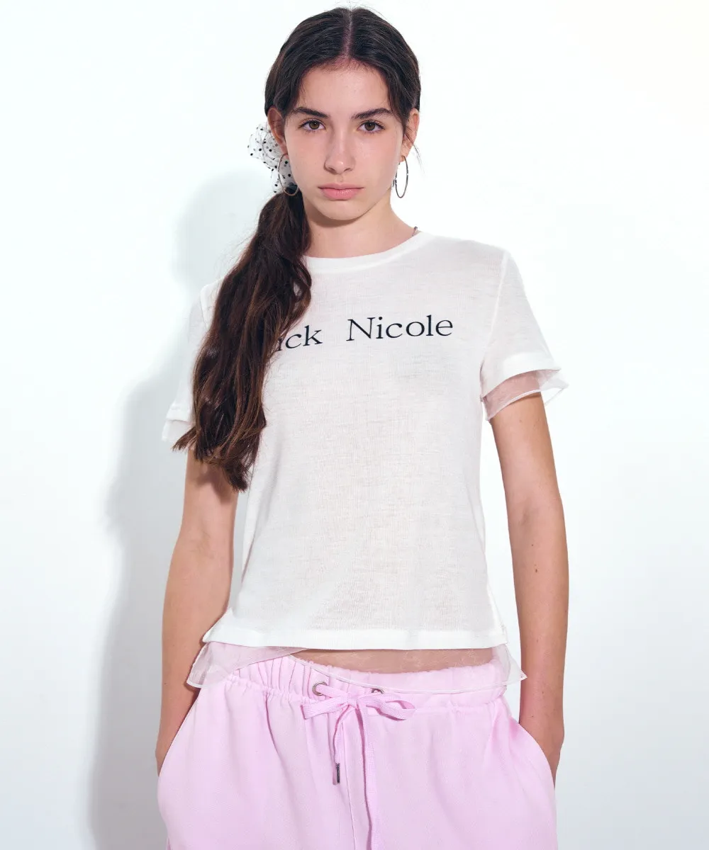 WB608細腰透光網紗下擺Tshirt 白 粉 紅 灰 黑 官網價$1350 線上價$1320