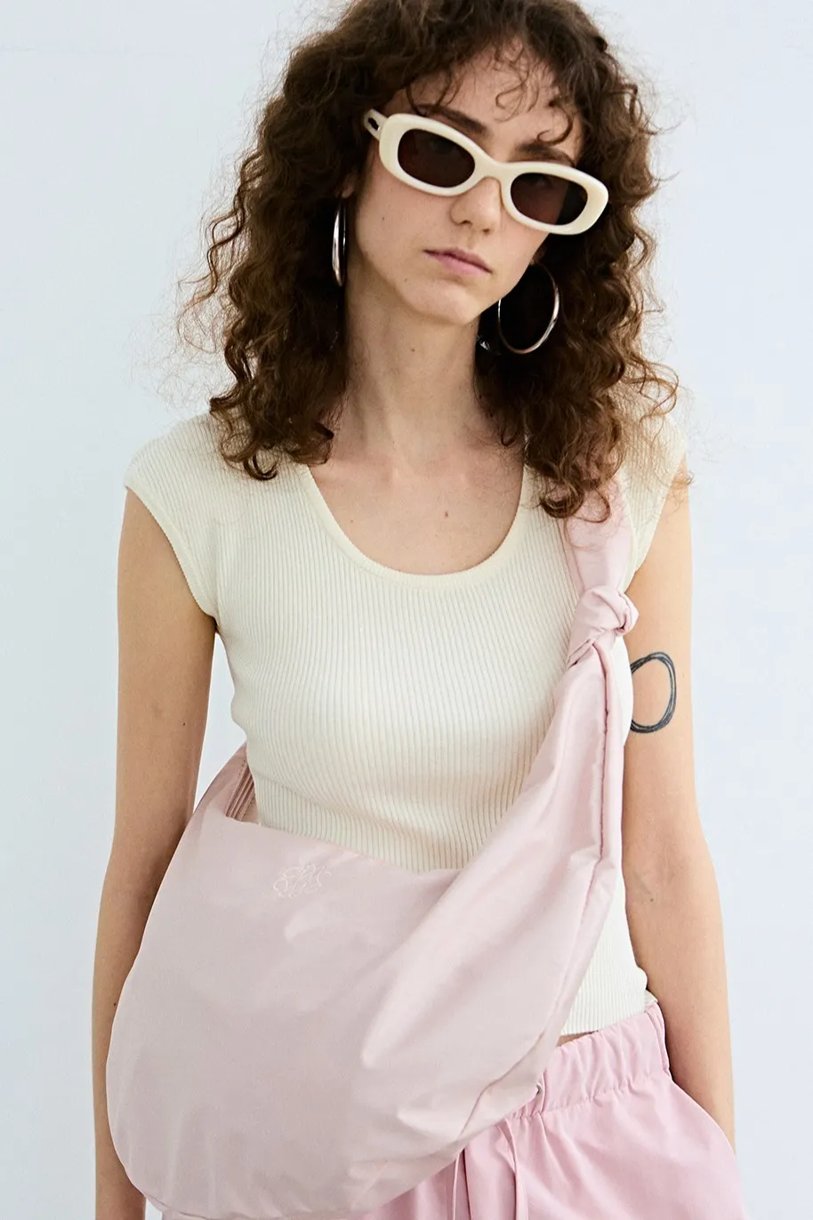 WB610尼龍扭結肩帶半月包 米 粉 灰 黑 官網價$2480 線上價$2450