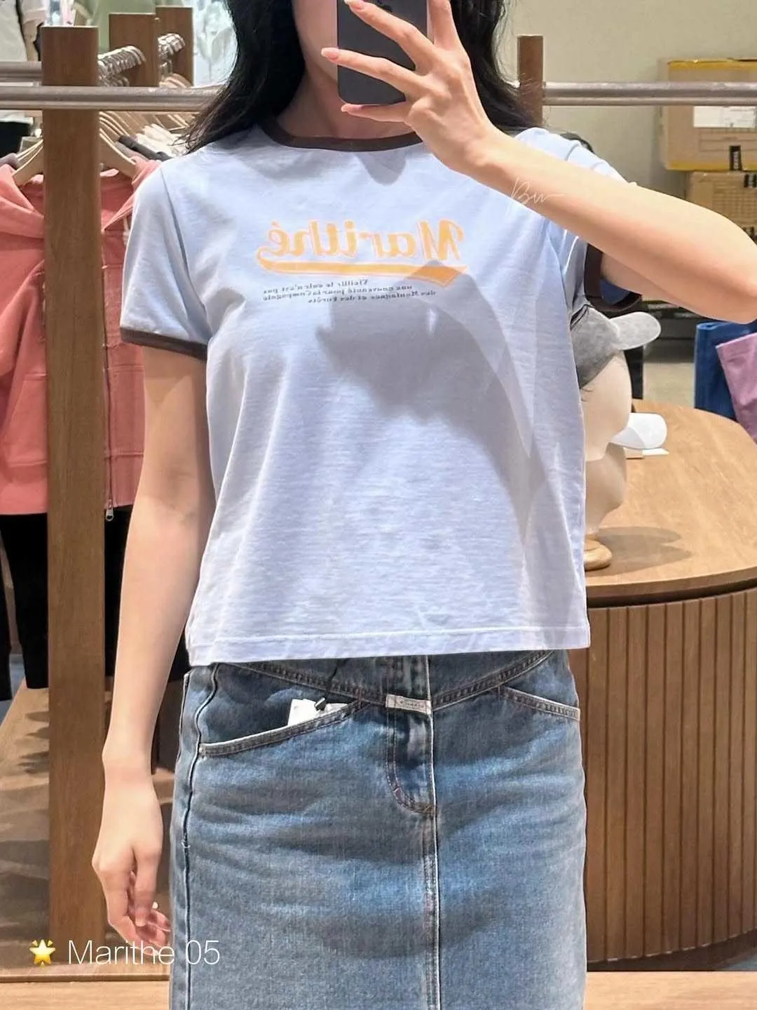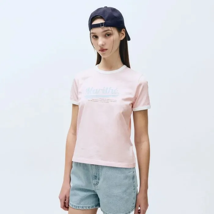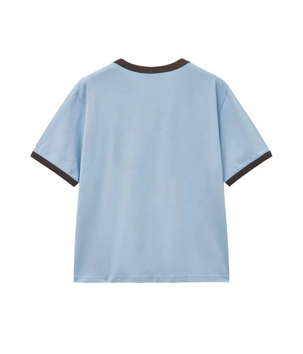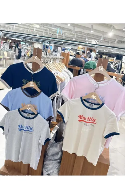 WB639女款滾邊仿舊Marithe短袖Tshirt 米 粉 藍 灰 S M 官網價$1050 線上價$1020
