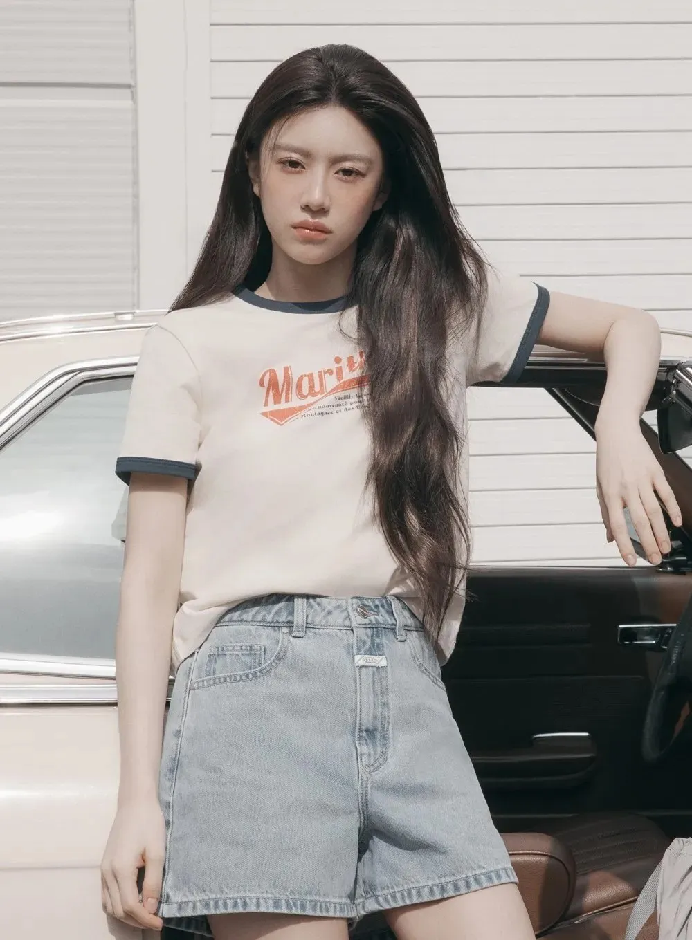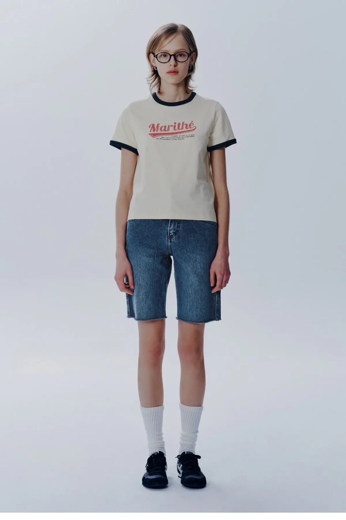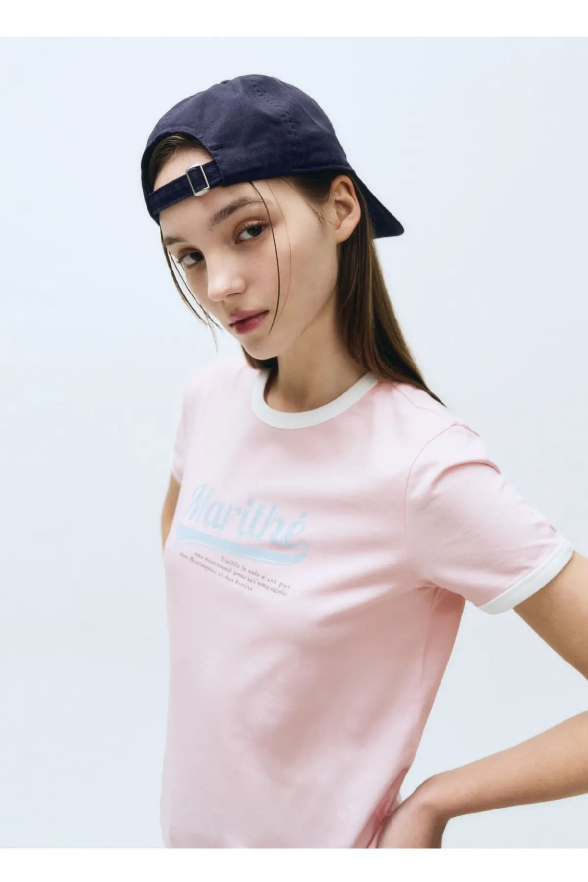 WB639女款滾邊仿舊Marithe短袖Tshirt 米 粉 藍 灰 S M 官網價$1050 線上價$1020