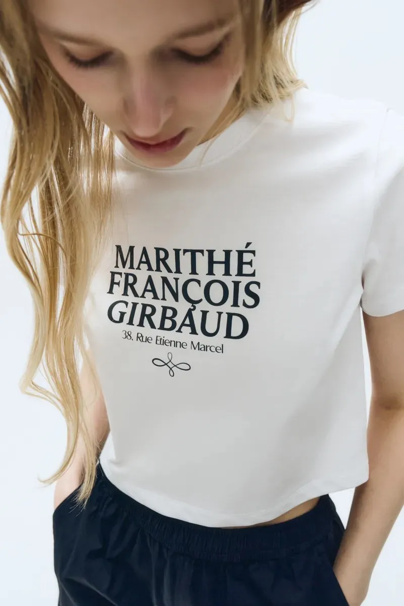 WB645新款文字MFG法文短版Tshirt 白 米 S M 官網價$1100 線上價$1070
