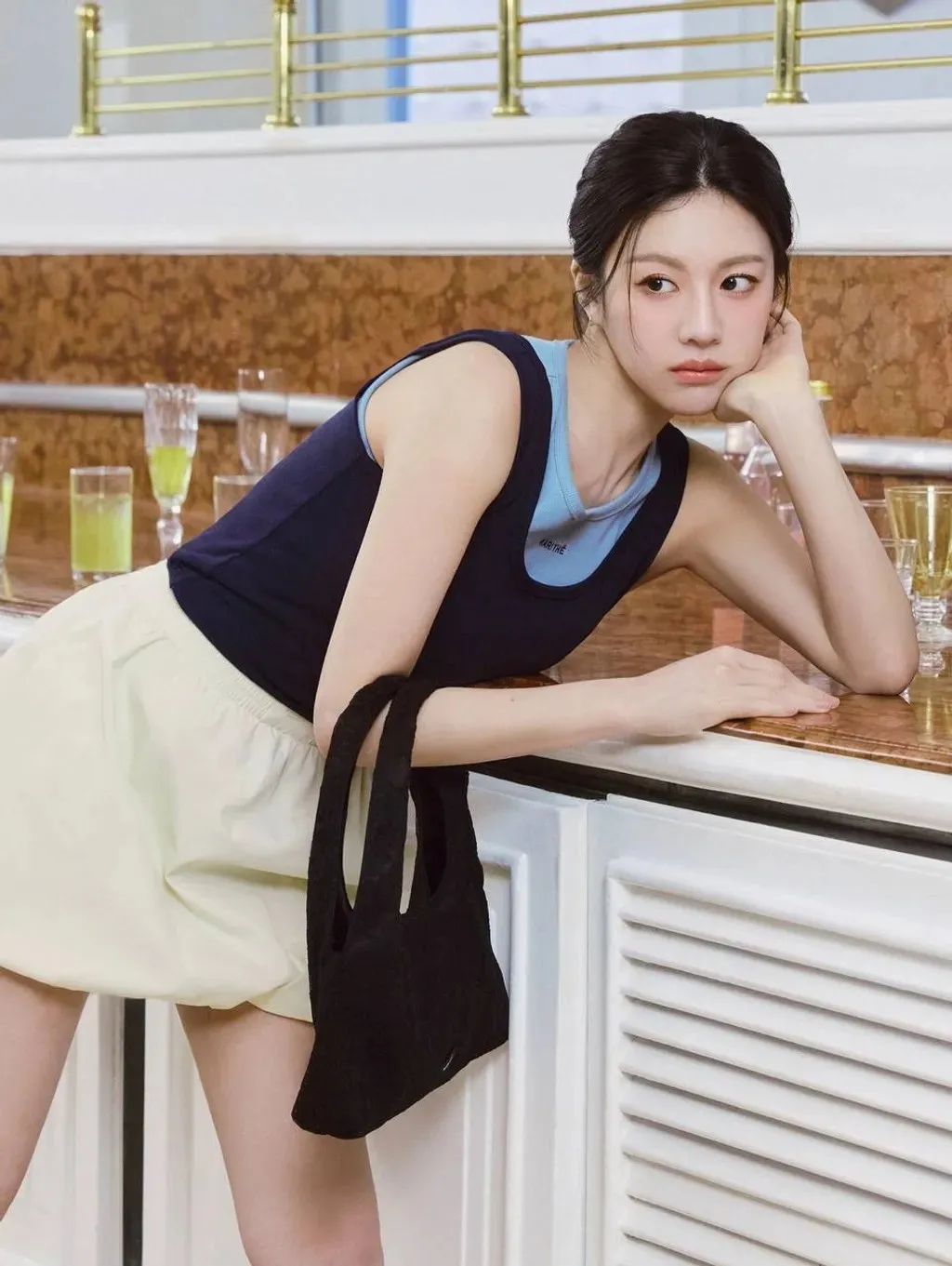 棉+彈力 有彈性 兩件可以拆 分開穿 胸前小LOGO