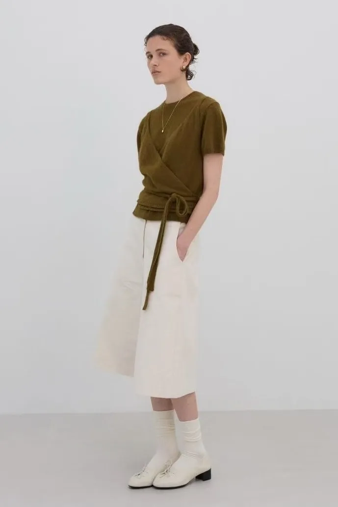 棉 釦鍊穿脫 雙腰耳 有口袋 高腰版型 膝下長度