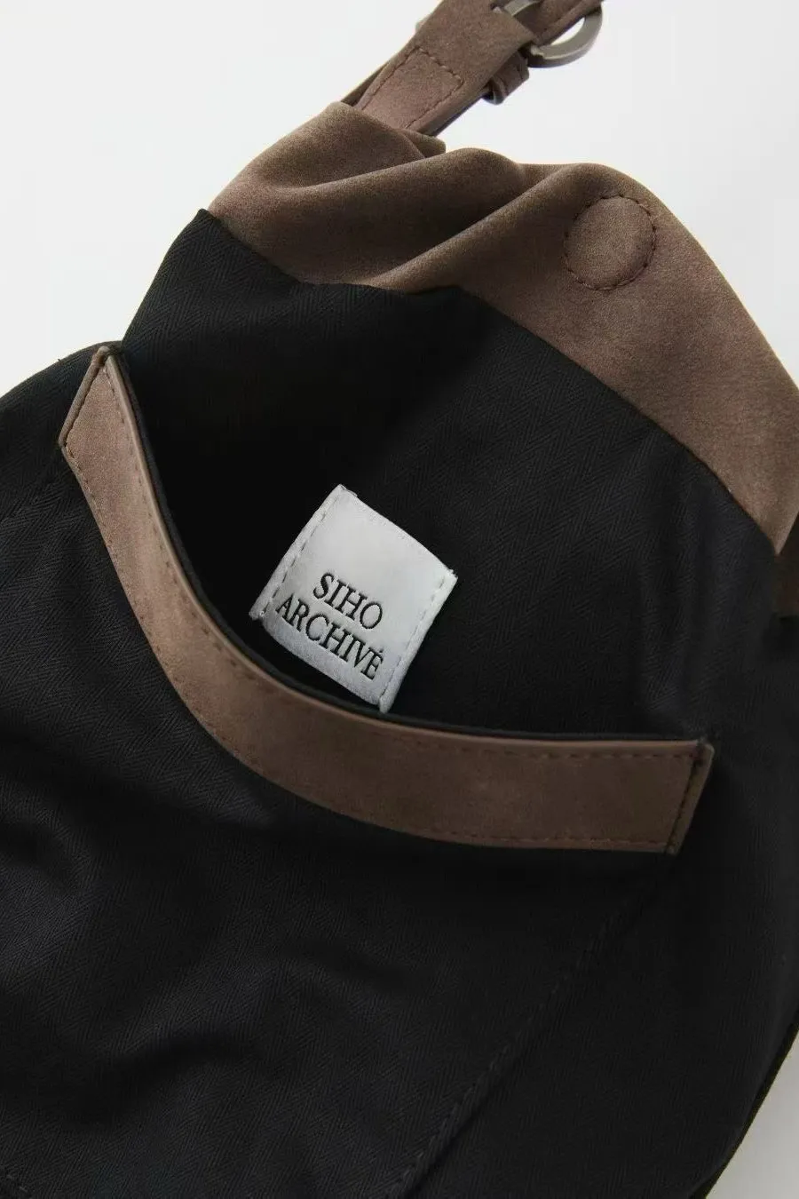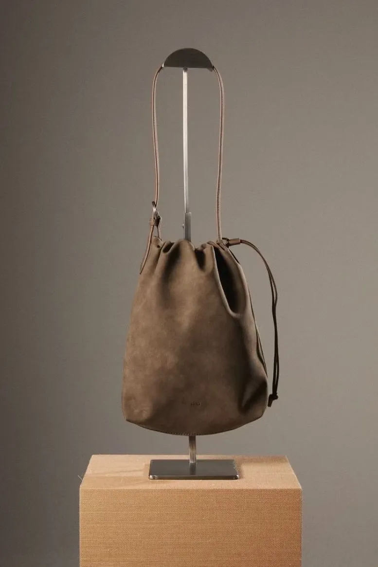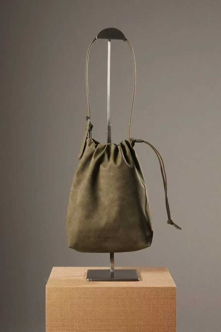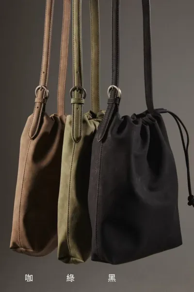 合成皮革,肩帶可調整 磁吸釦抽繩縮口 有內側袋