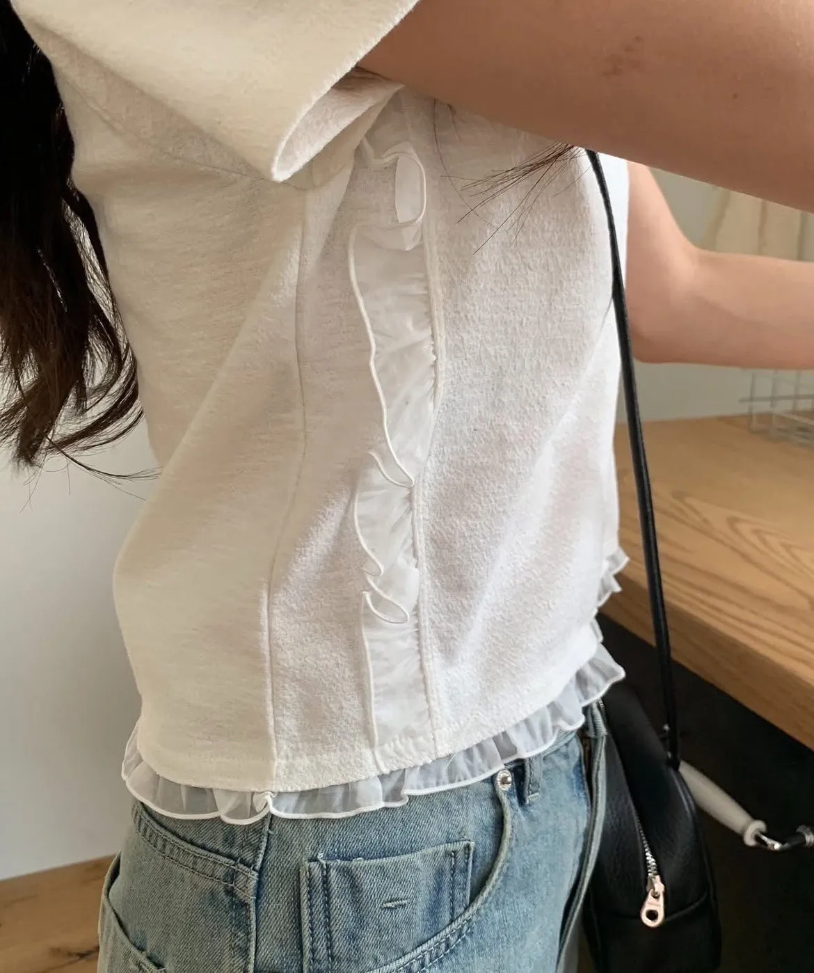 棉+聚酯+彈力 柔軟親膚 滑順微光澤 歐根紗滾邊