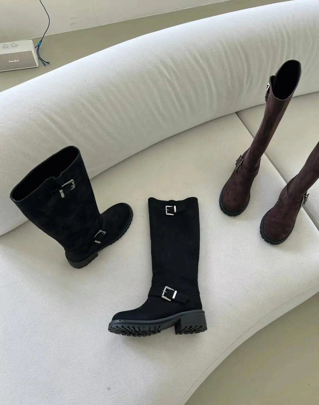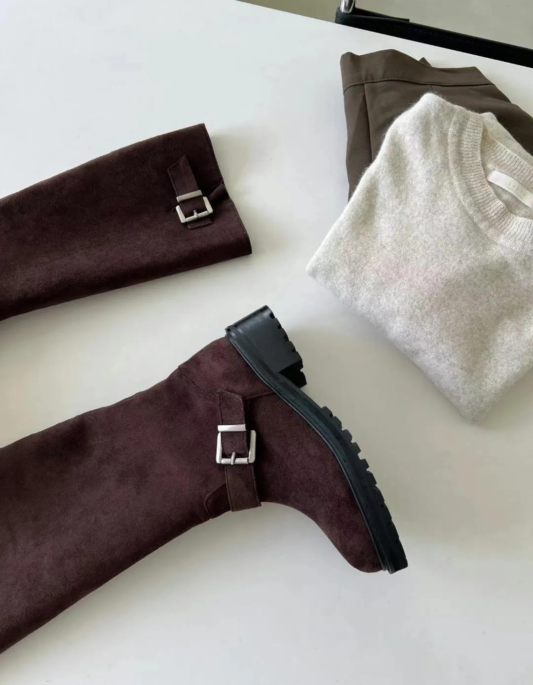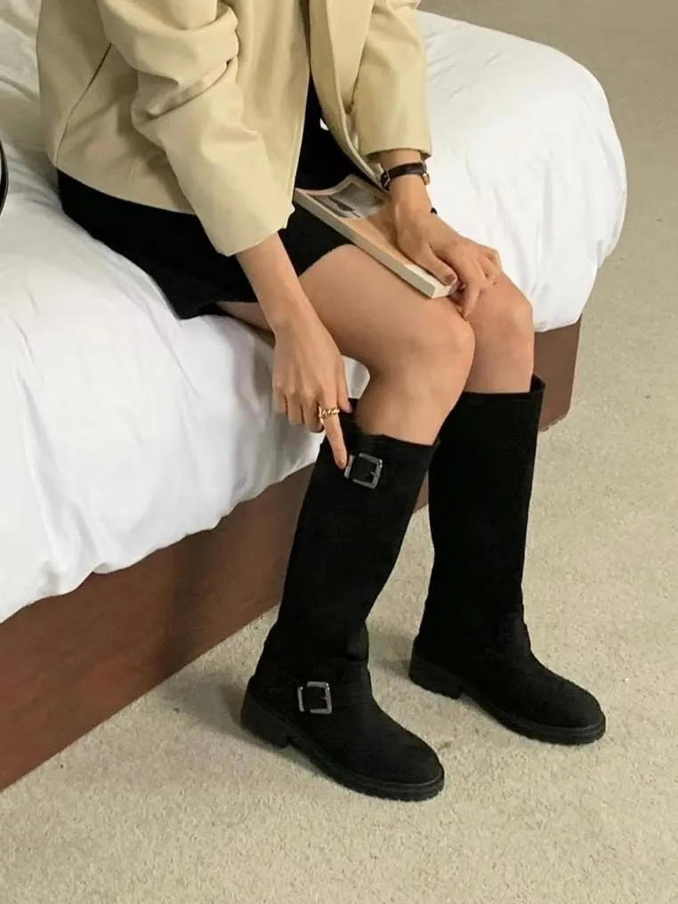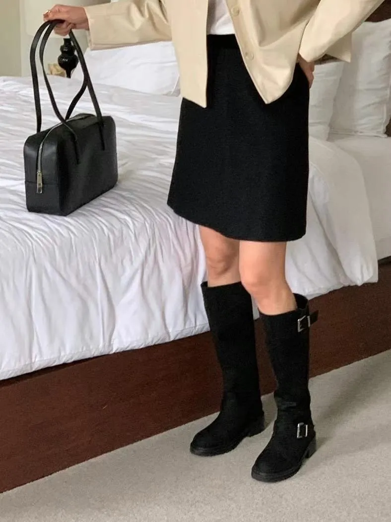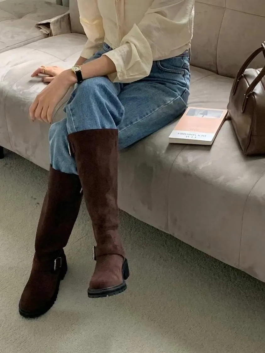 WB723麂皮雙釦環長靴 咖 黑 230-250(有半號) 官網價$1440 永恆甜甜價$1390